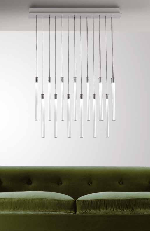 Constant research for exclusive touches has led to the creation of a lamp with a personalised, unique and exquisite shape: Multispot. The particular modular system was designed to give the architect the possibility of establishing the heights at which to position diffusers and lighting points, thus adapting the lamp to any project. The product can be perfectly adapted to suit any environment thanks also to the range of different sizes of ceiling rose available. It is ideal for adding a touch of glamour and charm to large areas. On request, Multispot lamps can be entirely customised.