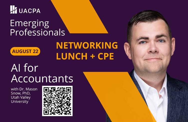 It truly is an exciting time to be a CPA! I’m inspired by the profound value CPAs nationwide and in Utah provide, enabling businesses and individuals to thrive. To remain at the forefront, we must continue evolving into trusted and strategic advisors by adopting new approaches that deliver even greater value. I hope this vital image campaign will resonate as we collectively forge our path toward being recognized as the strategic advisors we are. n