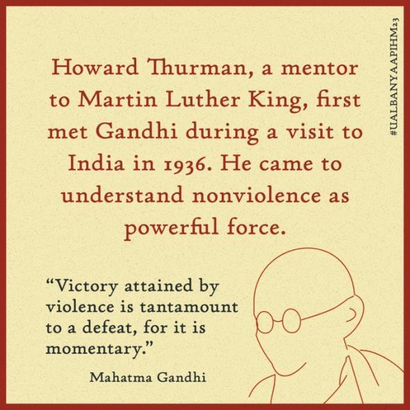 Even though Gandhi never visited America, his ideas travelled and were applied in the struggle led by Martin Luther King Jr. More importantly, the African American people, in their application of Gandhian ideas, provided perhaps the greatest interpretation of Gandhi’s method. To learn more, click here.
