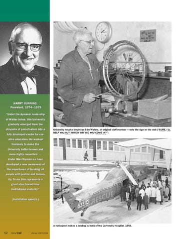 HARRY GUNNING: President, 1974–1979 “Under the dynamic leadership of Walter Johns, this University gradually emerged from the chrysalis of parochialism into a fully developed centre for cre-