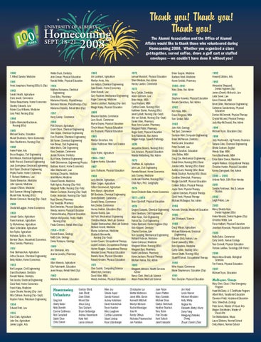 Thank you! Thank you! Thank you! The Alumni Association and the Office of Alumni Affairs would like to thank those who volunteered during Homecoming 2008. Whether you organized a class get-together, served coffee, drove a golf cart or stuffed envelopes — we couldn’t have done it without you! 1940 T. Alfred Gander, Medicine