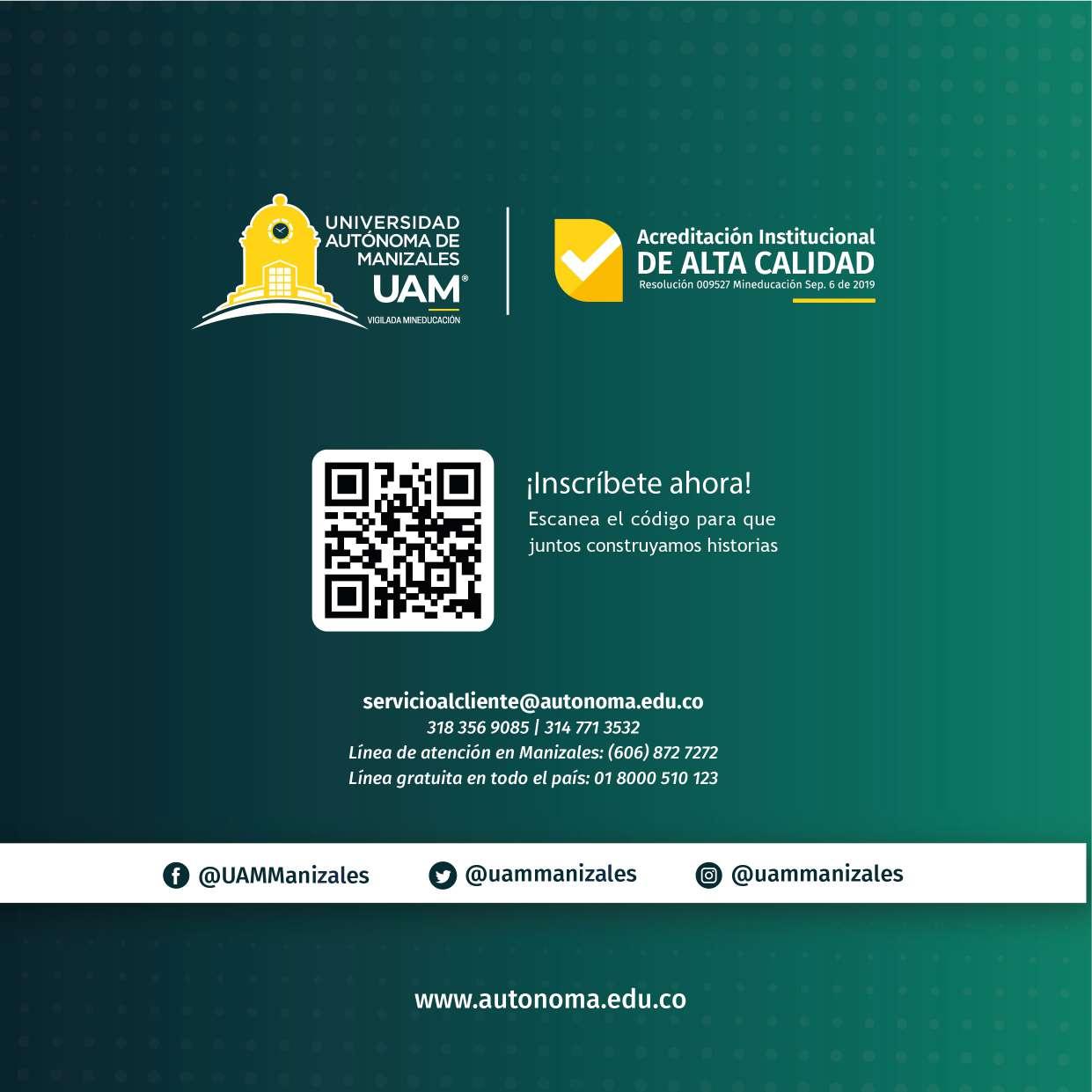 La UAM es una comunidad educadora, dinamizadora del conocimiento, comprometida con la convivencia pacífica y el desarrollo regional sostenible, que contribuye a la formación de personas éticas, emprendedoras, con pensamiento crítico e innovador en un marco de responsabilidad social. Aquí podrás encontrar: