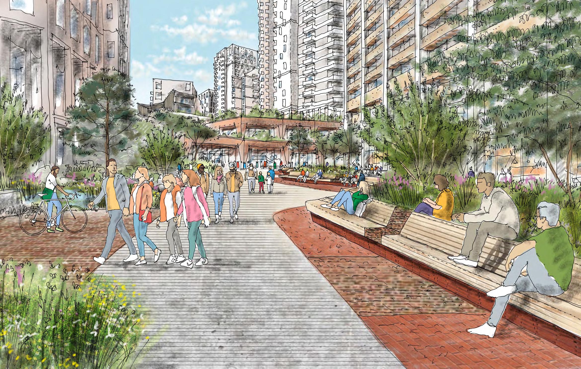 • Public open space, public realm, amenity space and landscaping works;