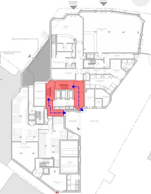 Kitchen extract for the retail units will be arranged to discharge via the louvred façade openings, with kitchen ventilation equipment to be located within the shell and core area and installed as part of the fit out by the tenant.