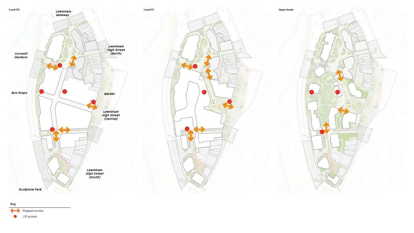 Given the multi-leveled nature of the Proposed Development, ensuring access to those groups who need assistance has been central to the development of the masterplan. The Design Code sets out where in the masterplan that lifts must be provided to accommodate different access methods.