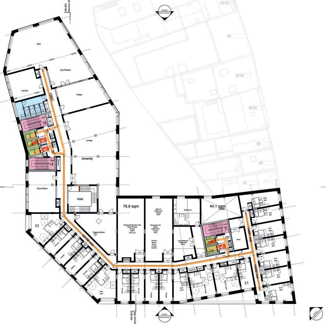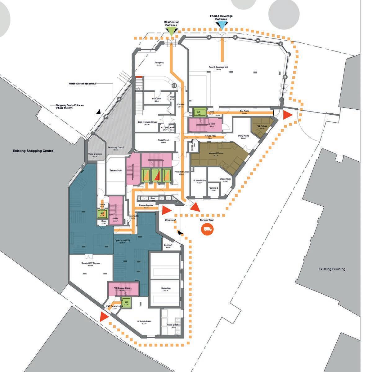 Ground floor ancillary areas such as bin stores, bike stores, caretaker’s office and market storage area that fall inside the building thermal line will be mechanically ventilated via MVHR units either dedicated to the space or shared with other spaces depending on the layout.