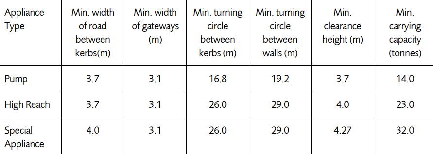 Is the emergency vehicle tracking route within the site to the siting points for appliances clear and unobstructed?