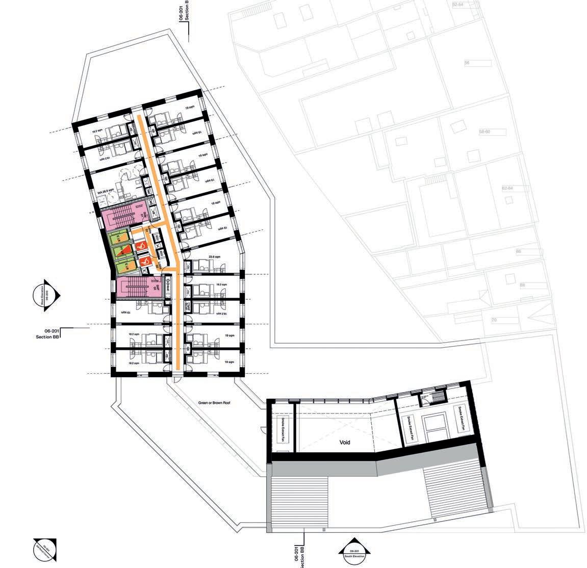 Corridors and communal lobbies will be provided with mechanical smoke ventilation systems. The smoke ventilation systems will also mechanical ventilation, operating based on the internal temperature. Communal corridors are included in the separate overheating assessment to ensure these spaces are adequately ventilated to mitigate overheating risk.