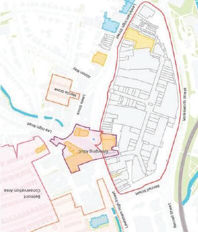 In Phase 1a, a key relationship for the plot within the masterplan is with the new Northern Square, as well as the relocated shopping centre entrance which will be directly adjacent to the building. In Phase 3, the plot forms part of the new raised street and a backdrop to the new Lewisham Meadow public park.