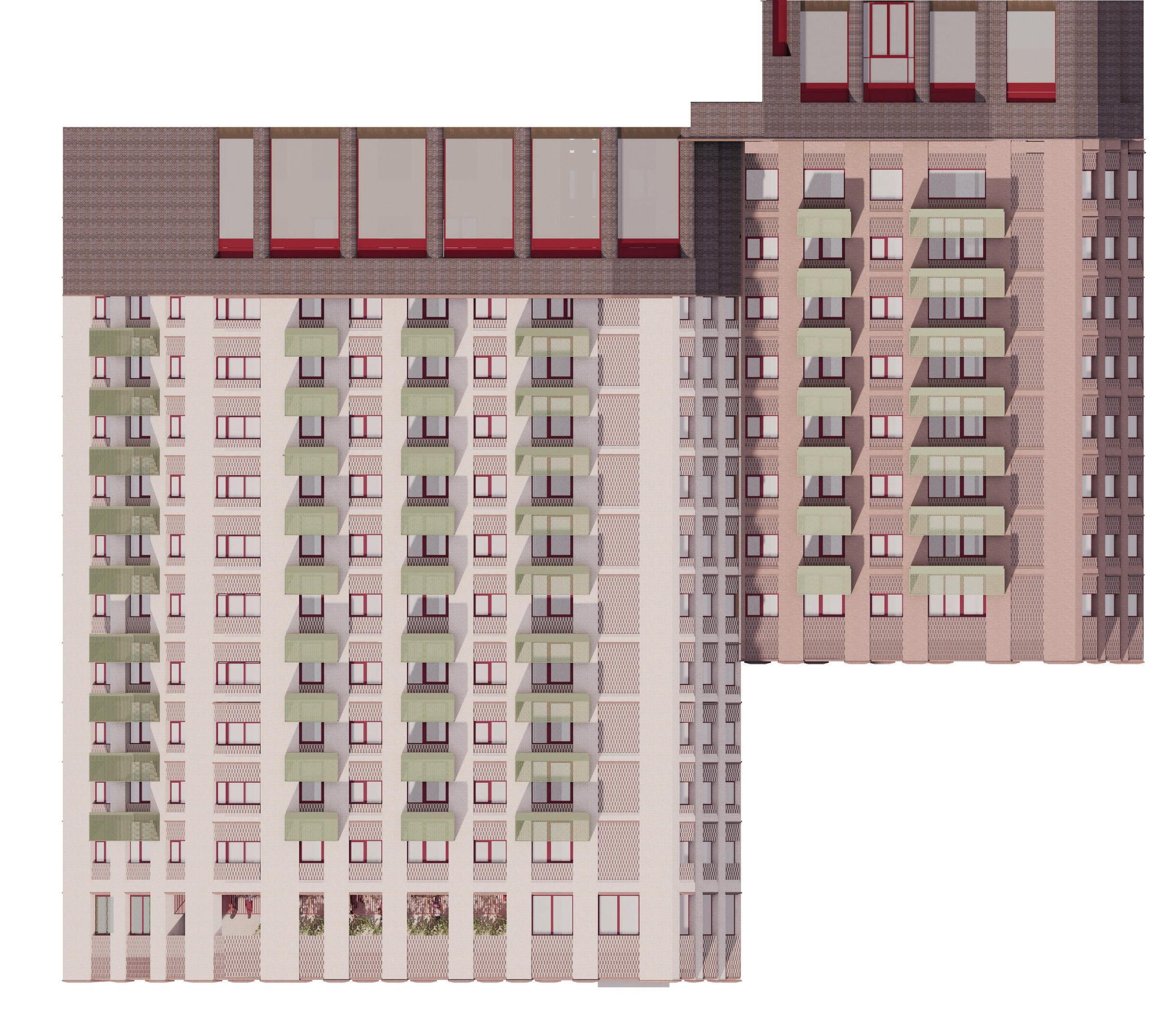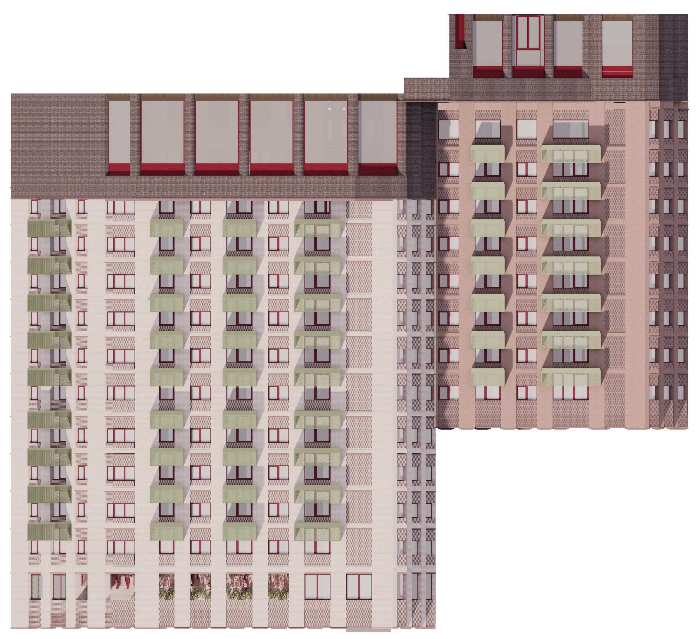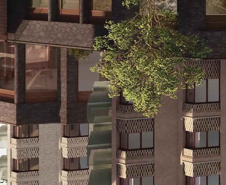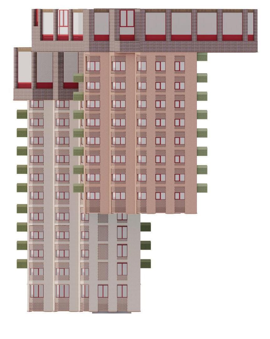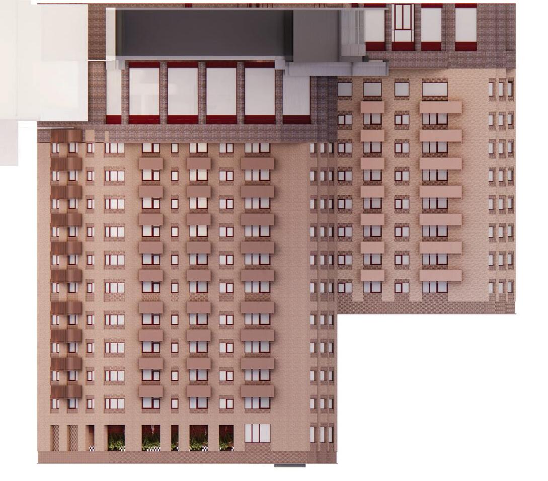 -The materials have been updated to create a stronger contrast between the two blocks, helping to break down the building’s mass and add visual interest.