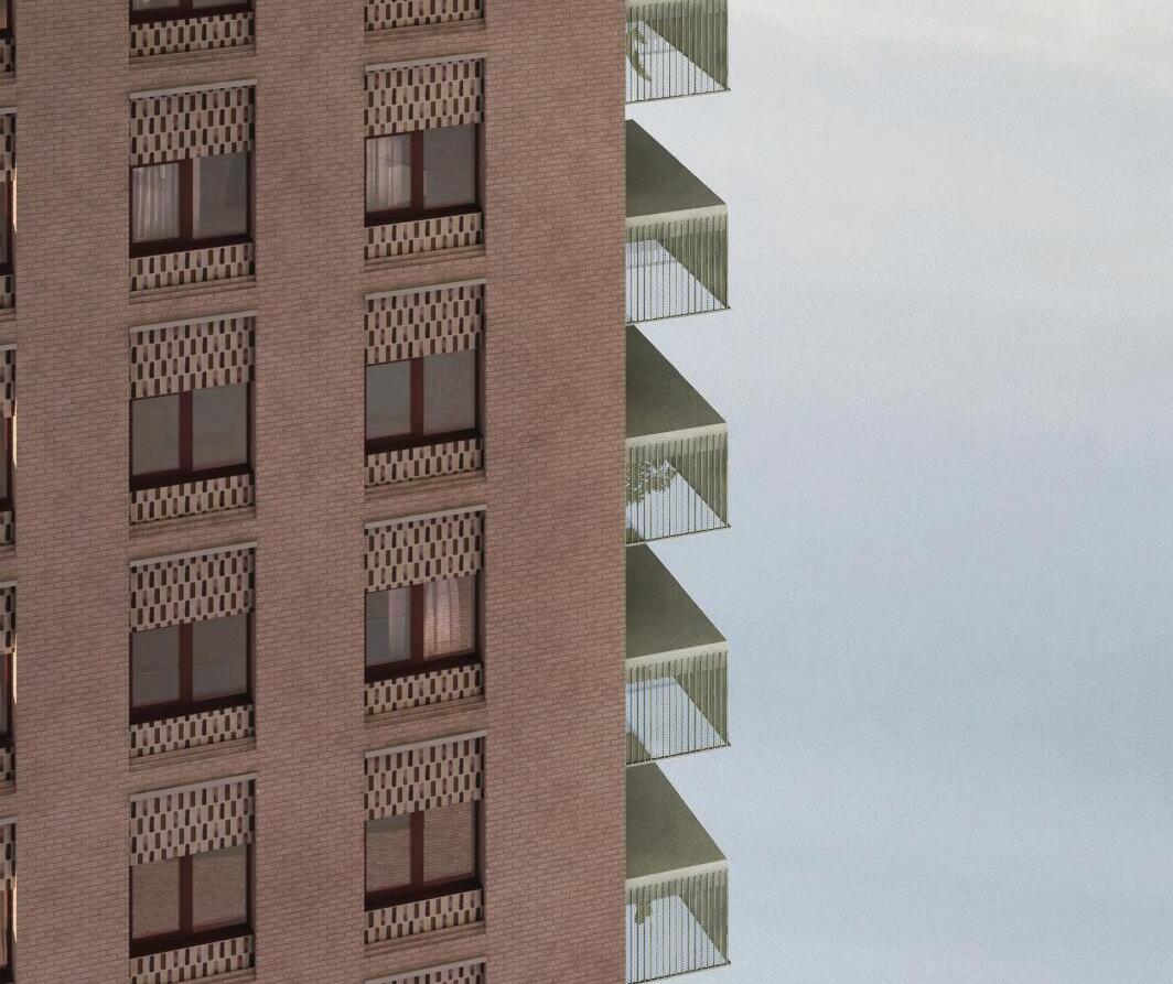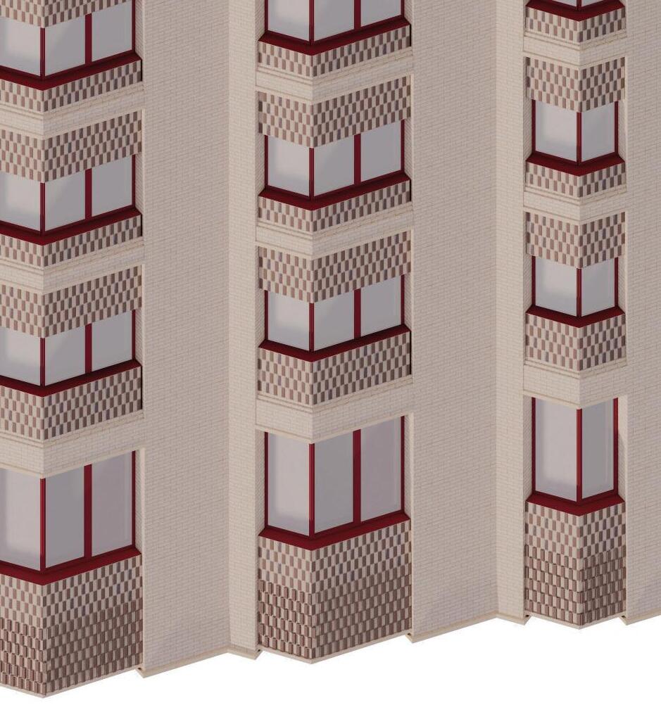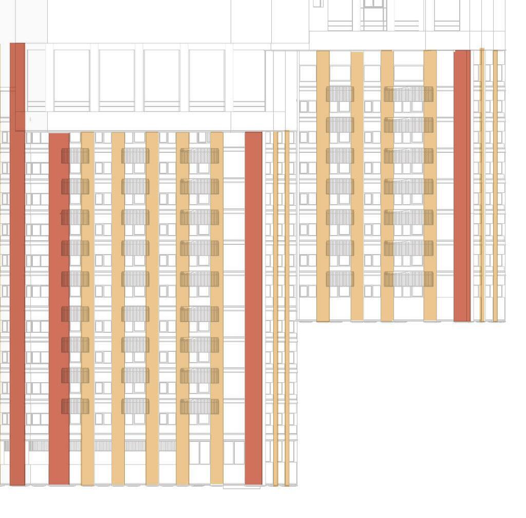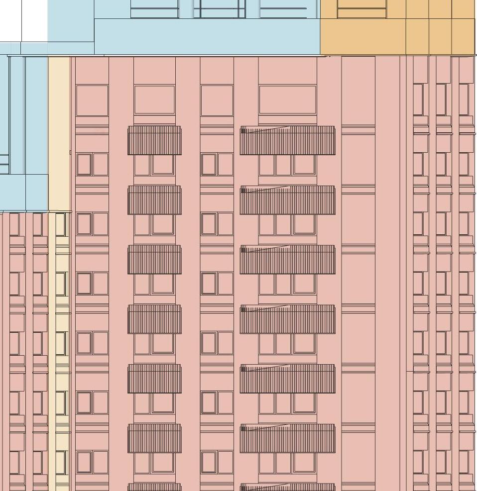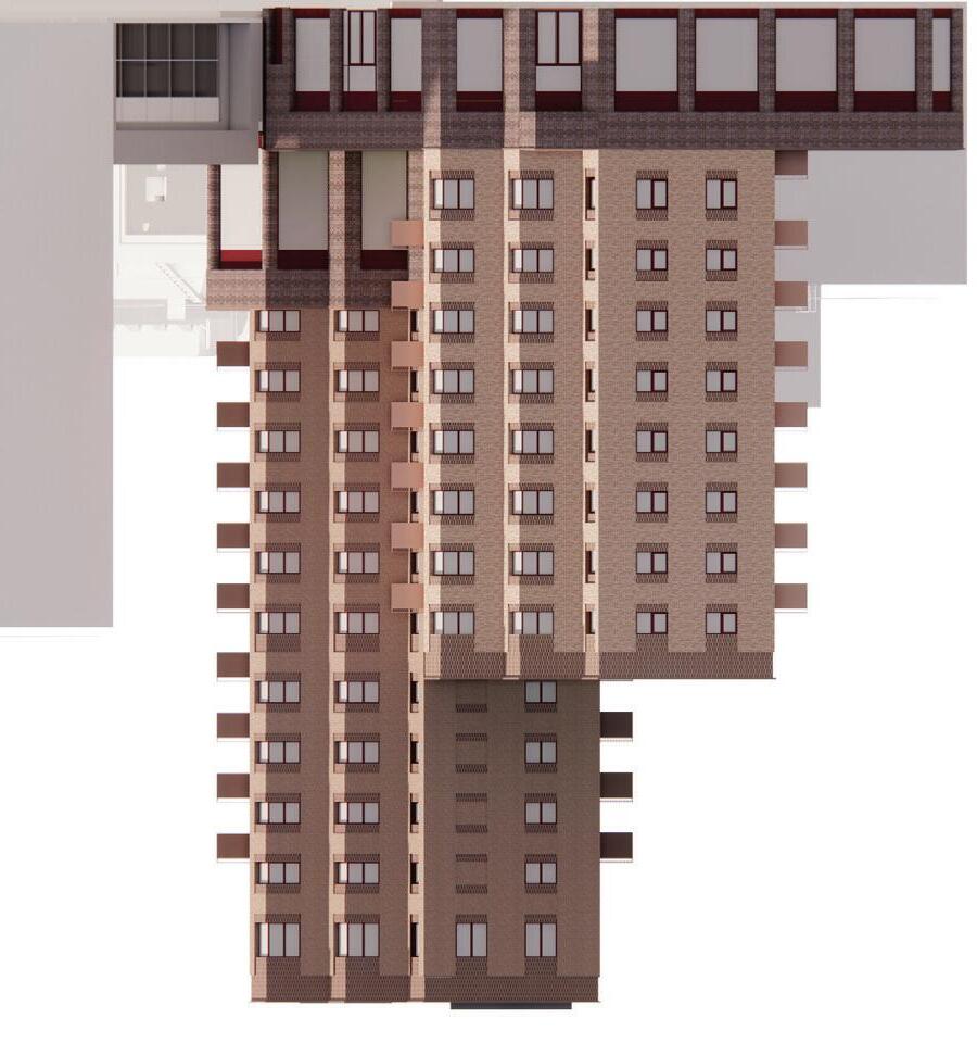 -The materials have been updated to create a stronger contrast between the two blocks, helping to break down the building’s mass and add visual interest.