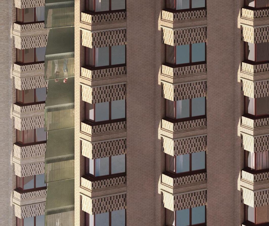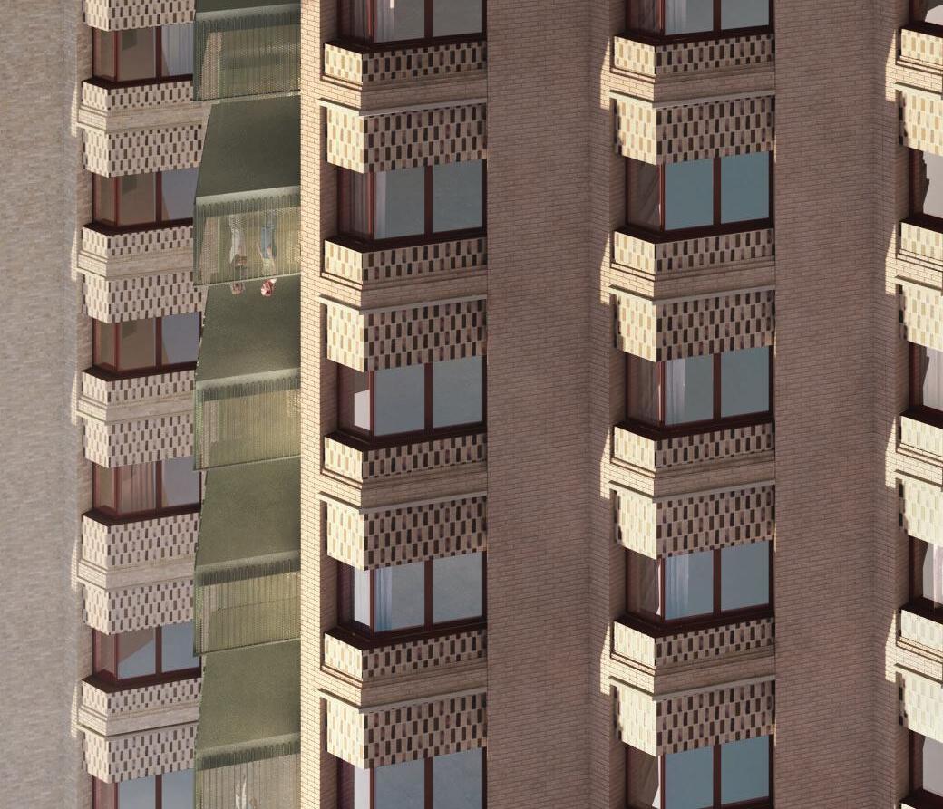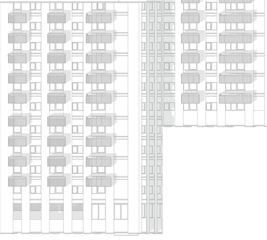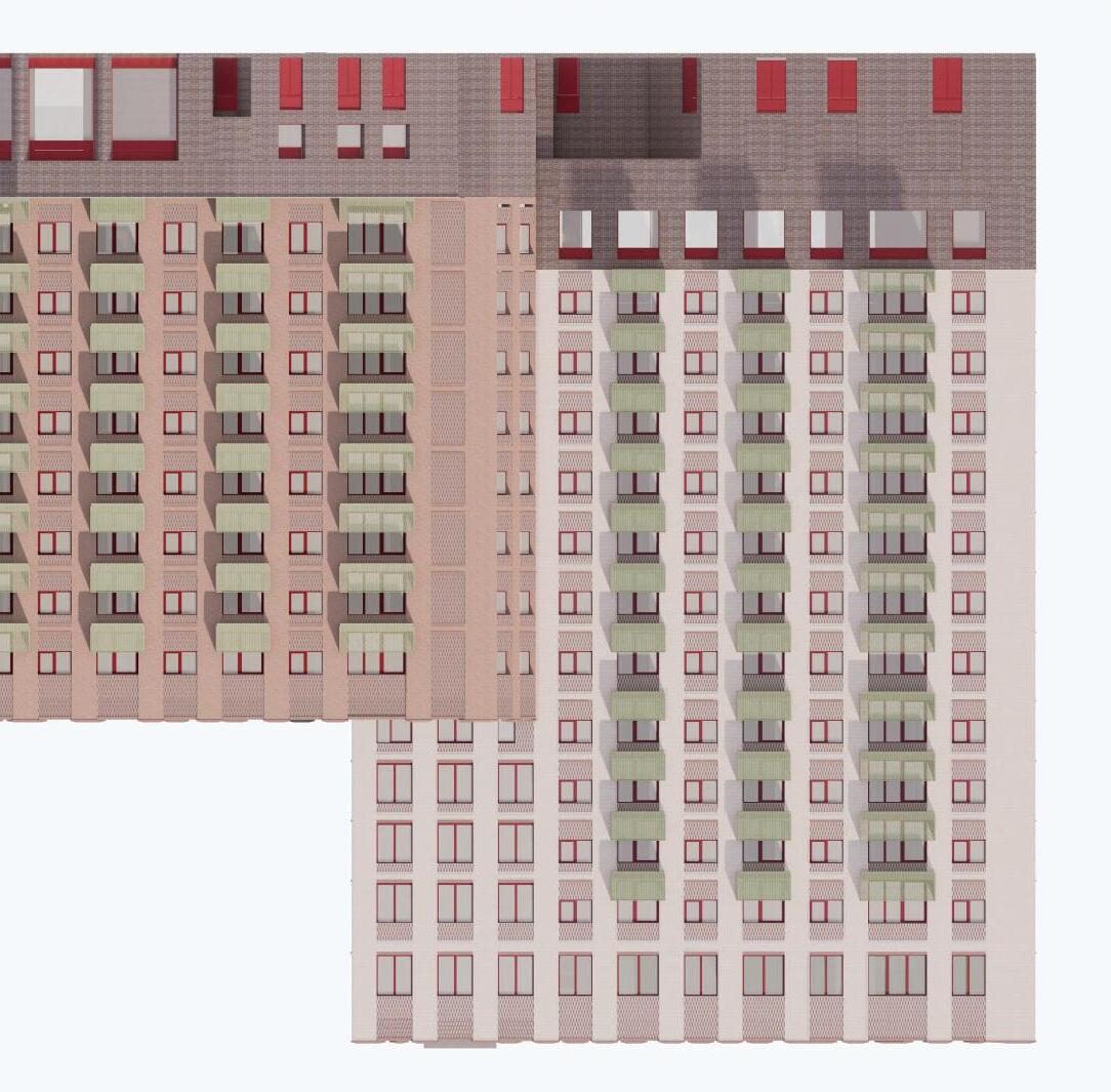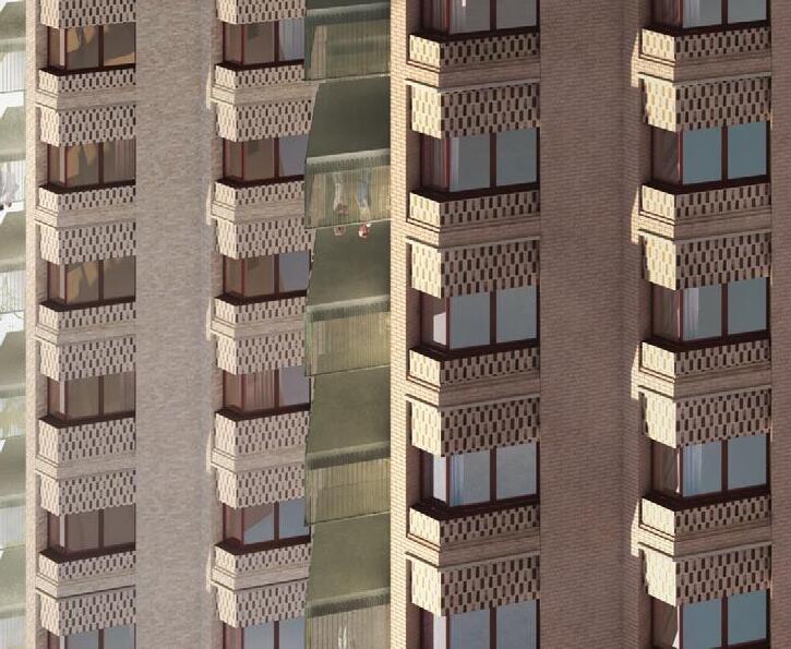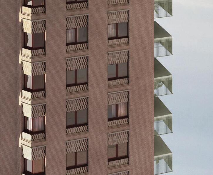-The materials have been updated to create a stronger contrast between the two blocks, helping to break down the building’s mass and add visual interest.
