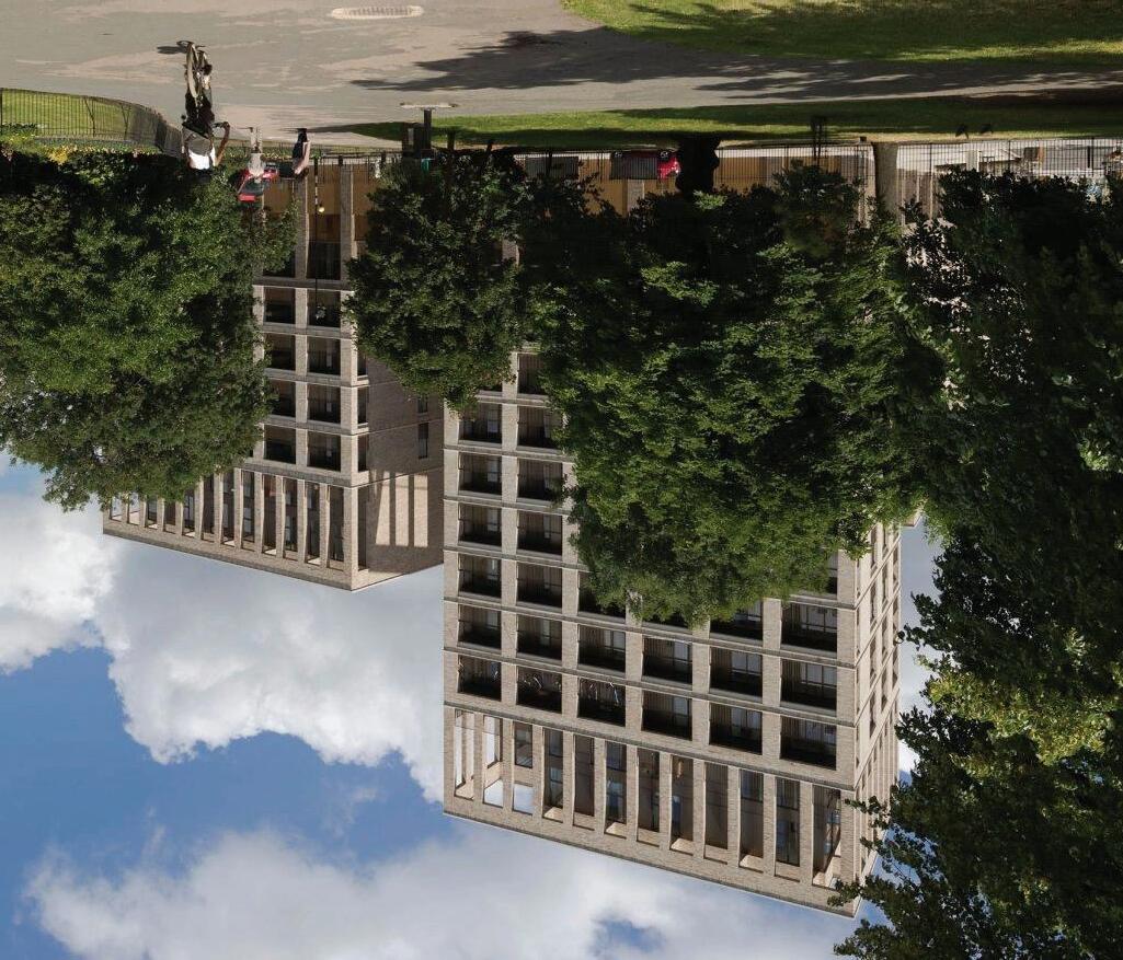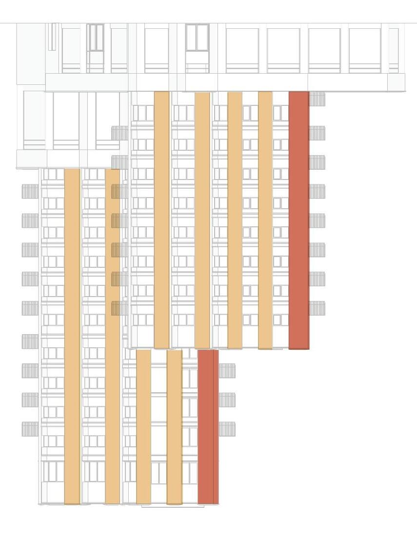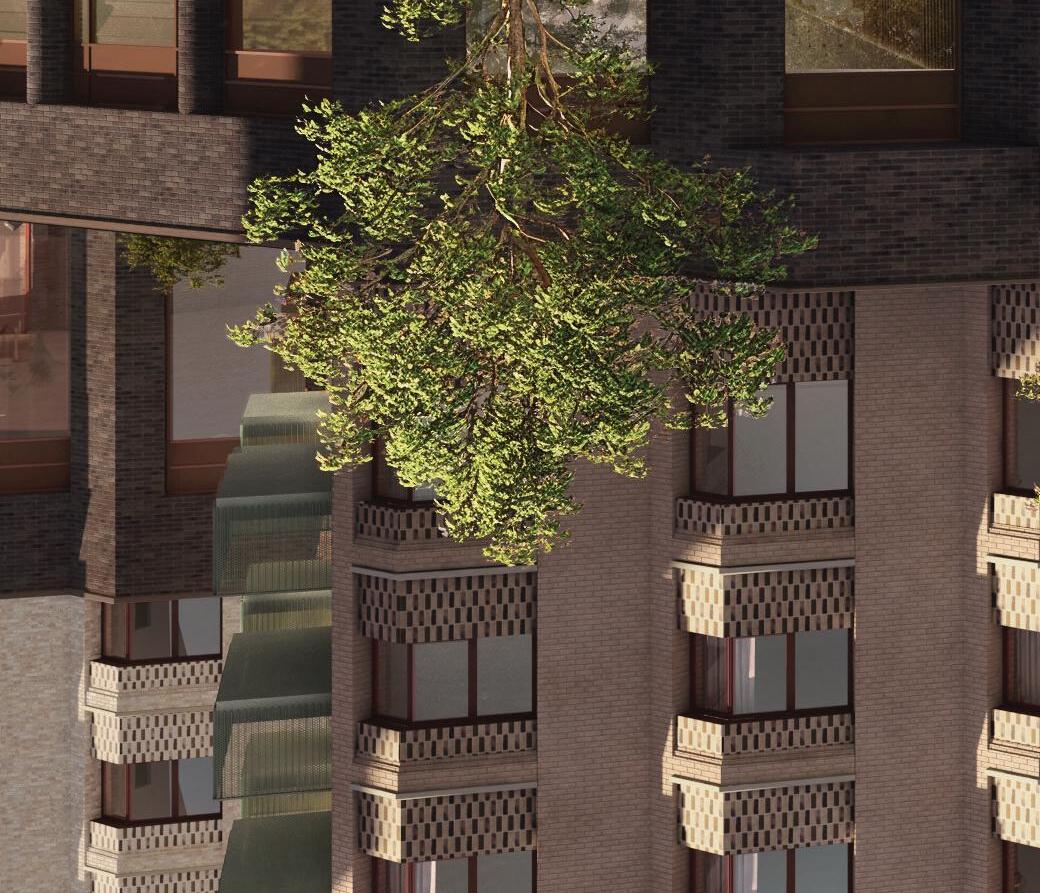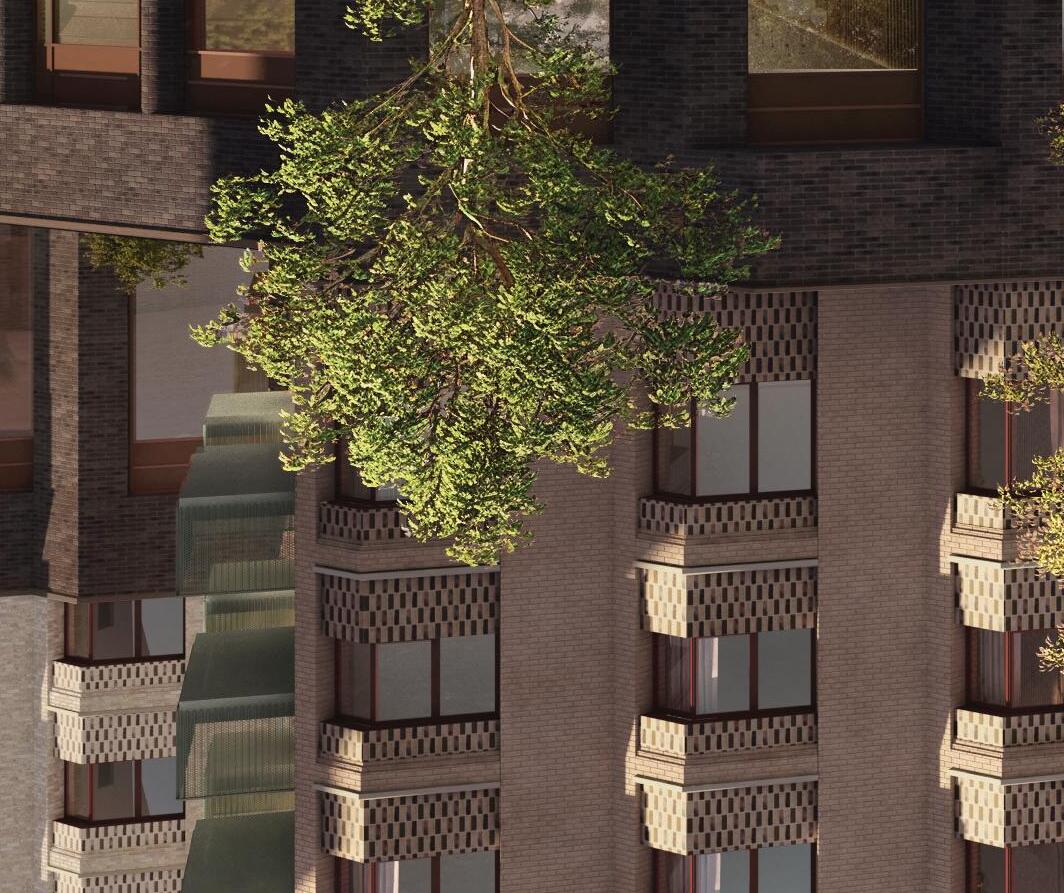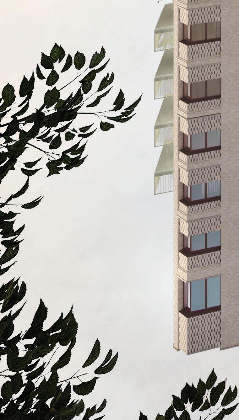-The materials have been updated to create a stronger contrast between the two blocks, helping to break down the building’s mass and add visual interest.