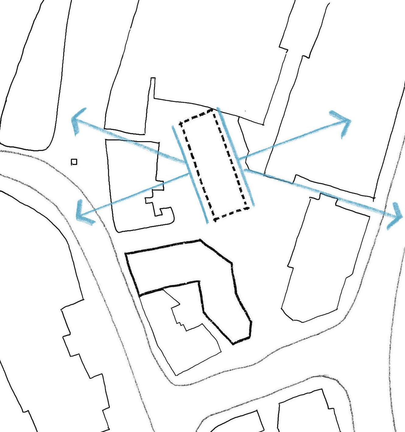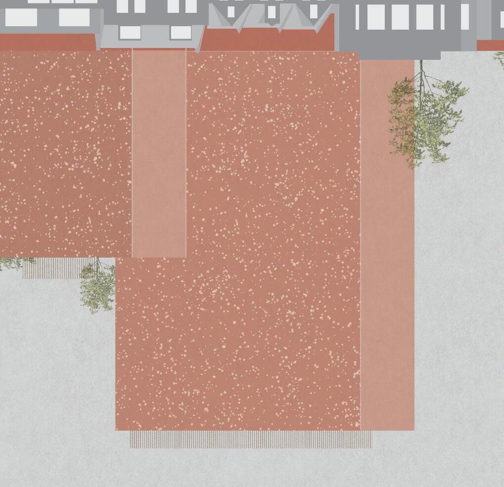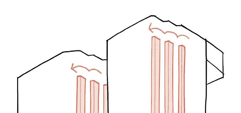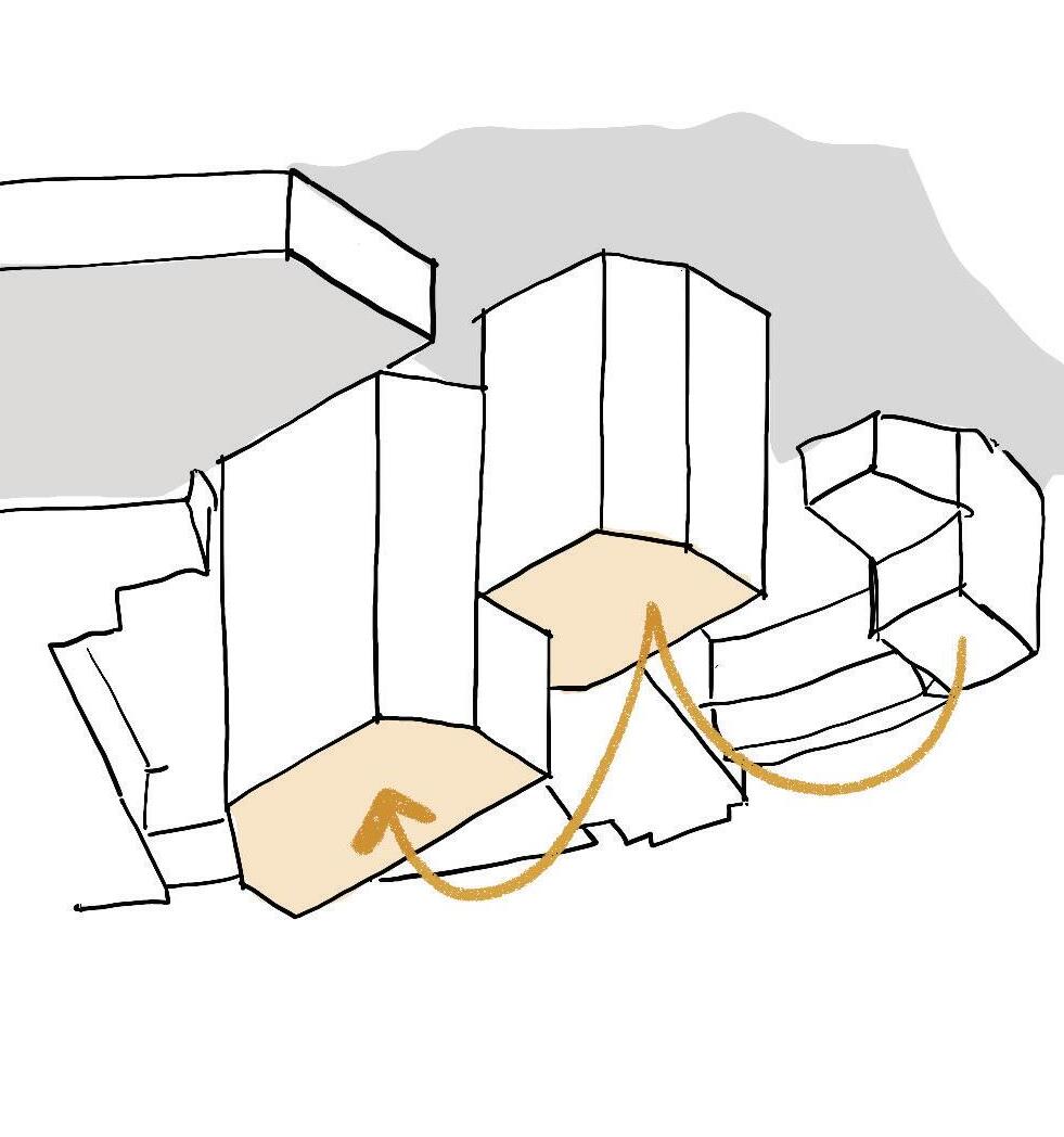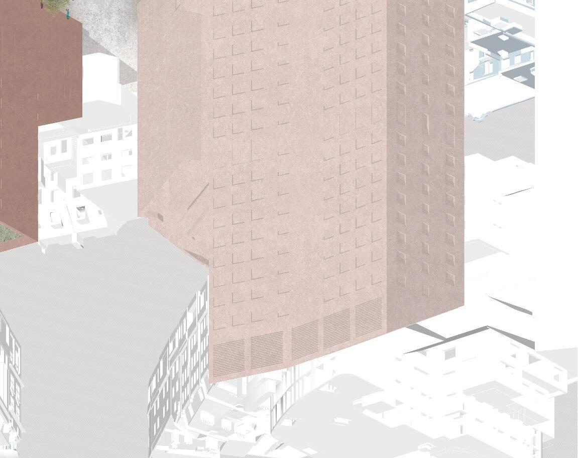 -We reduced the height difference between the two blocks, making the taller block feel less like a marker building.