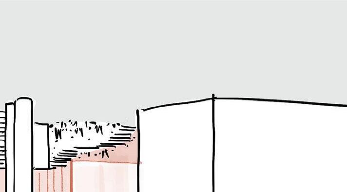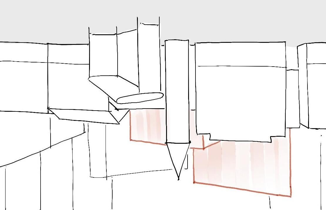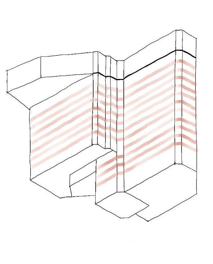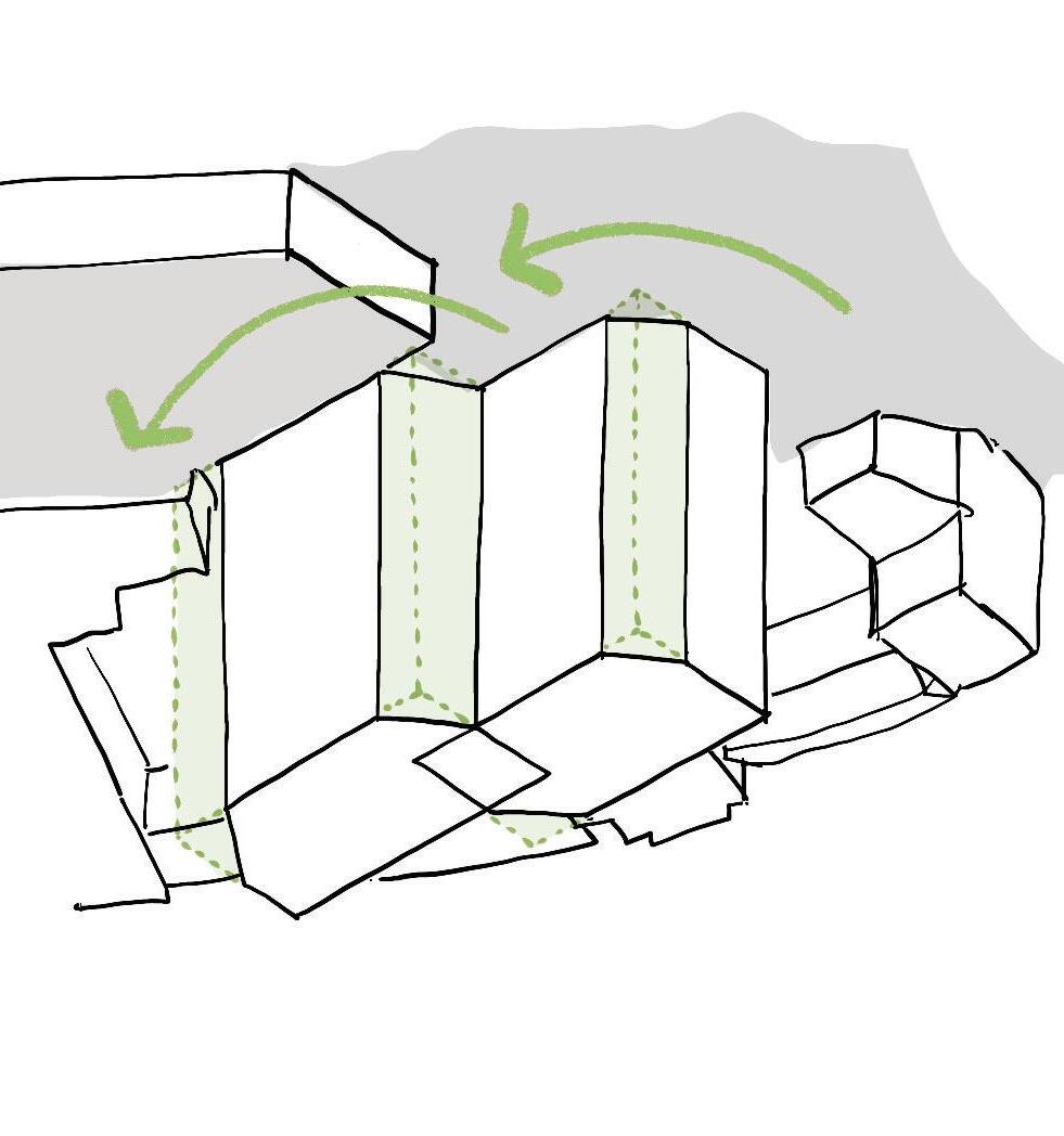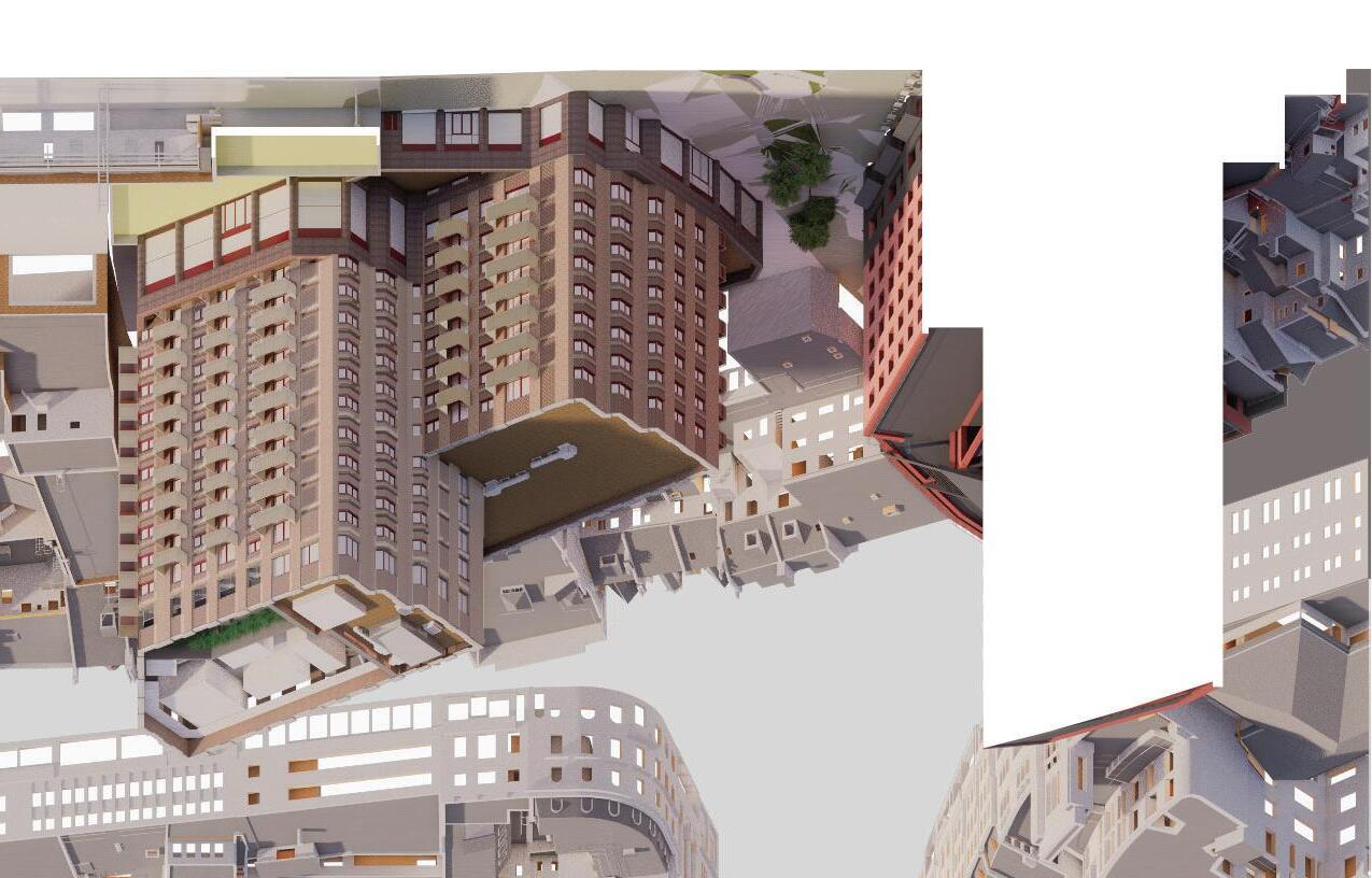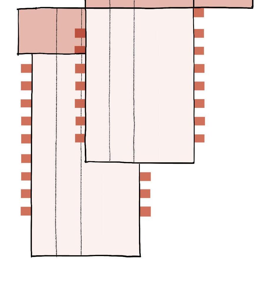 -We reduced the height difference between the two blocks, making the taller block feel less like a marker building.