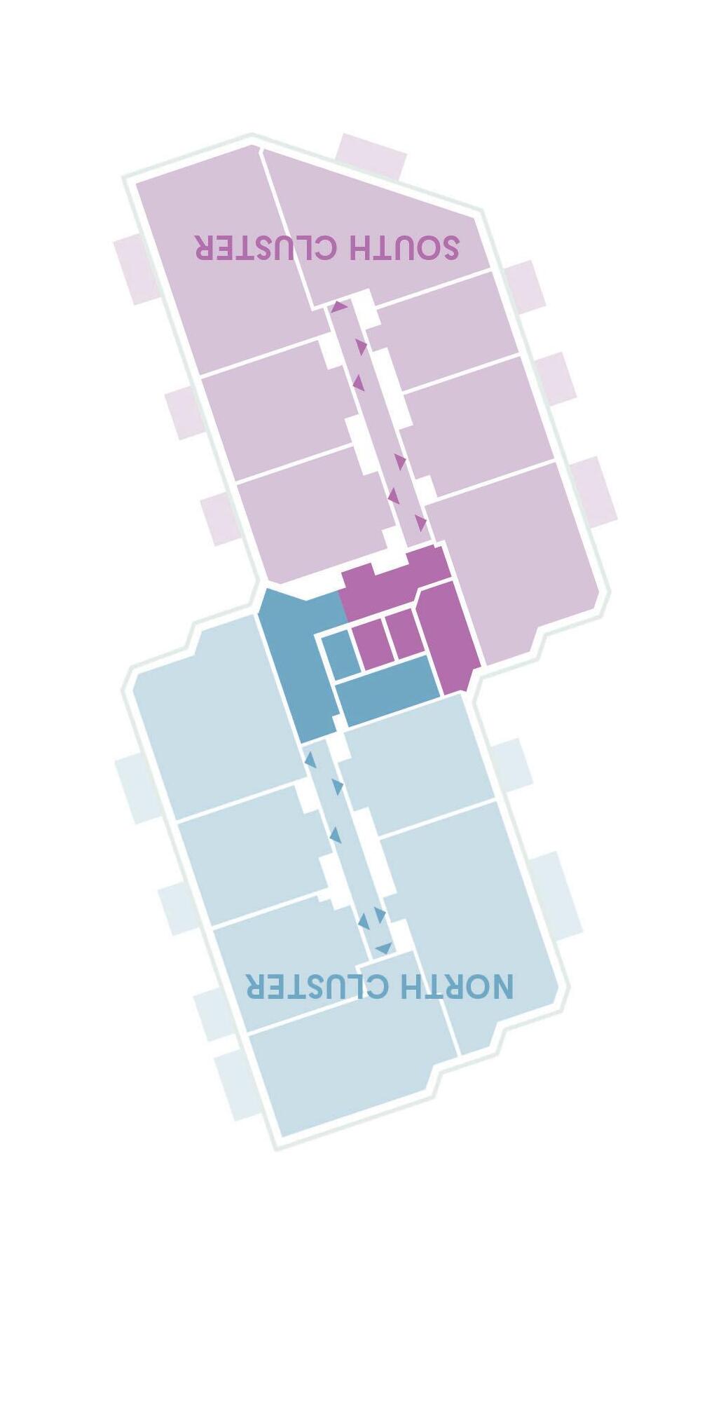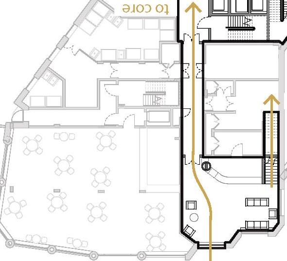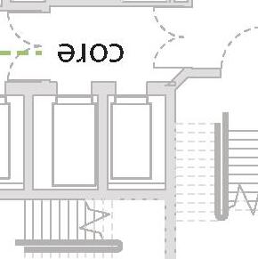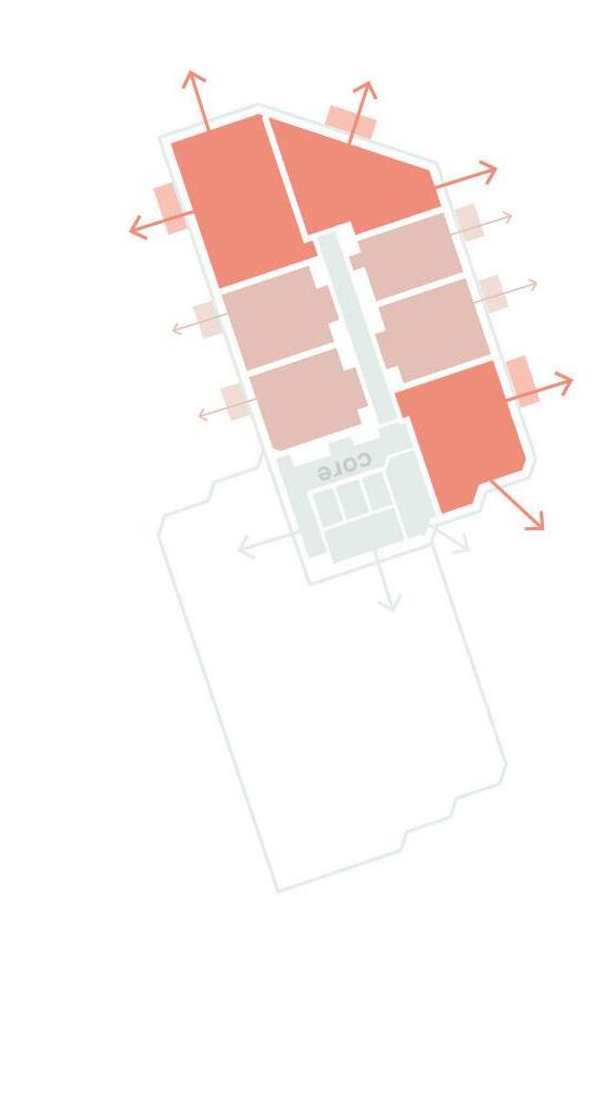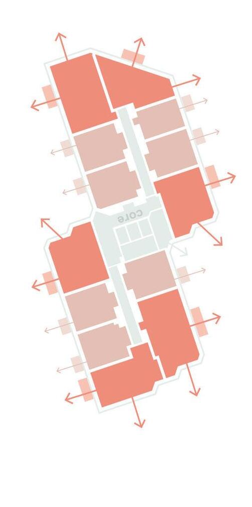 -We have rotated the core 180 degrees. With this, we have added windows to the core on both the north and west elevations, bringing more daylight into the core and continuing the rhythm of the facades.