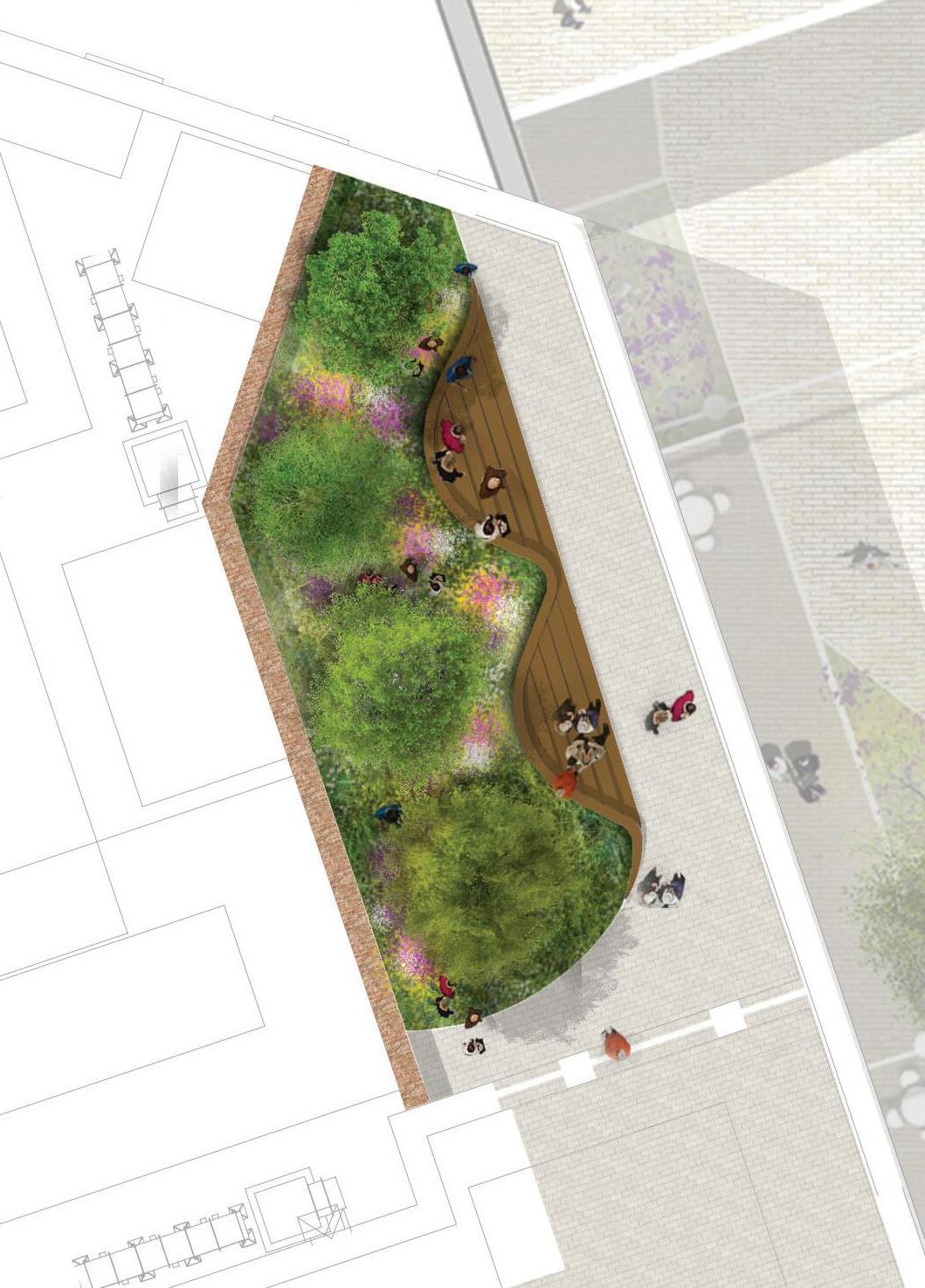 -The residents’ pavilion should be further developed to reduce its visibility from the High Street.