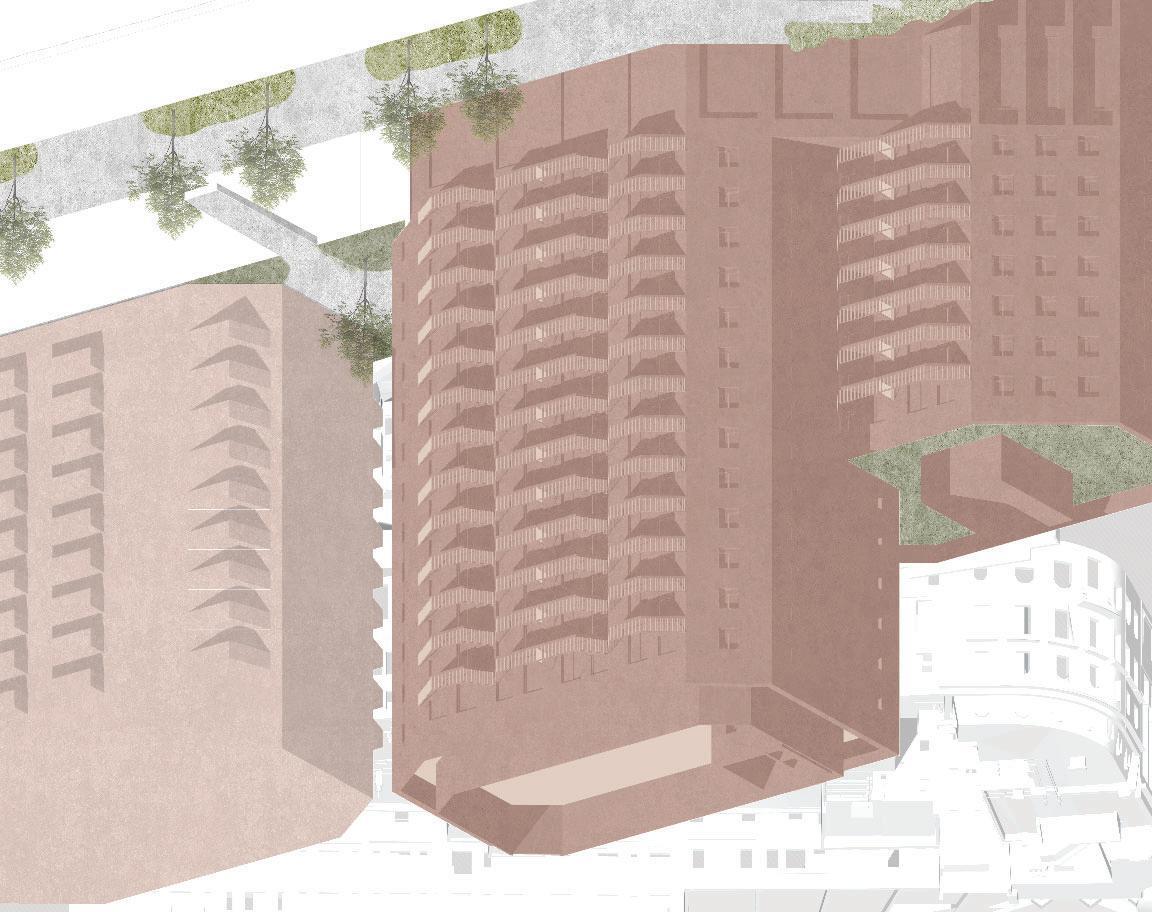 A massing workshop was conducted to address key comments from the second PreApp related to building height. As a result, the overall height was reduced, with the southern block lowered by three storeys and the northern block by one storey. 24.04.2024
