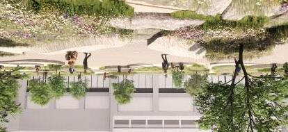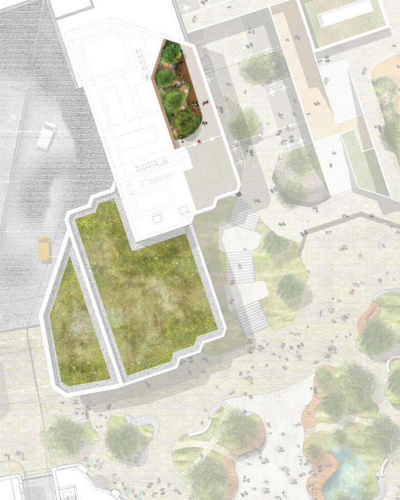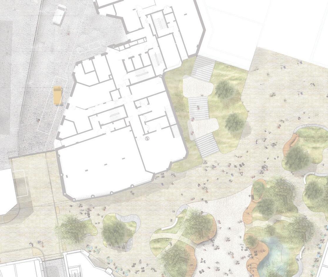 -We have simplified the base geometry so that the two connected blocks now sit on a single storey plinth. This steps up as the level of the landscape changes, responding more directly to the external levels around the building.