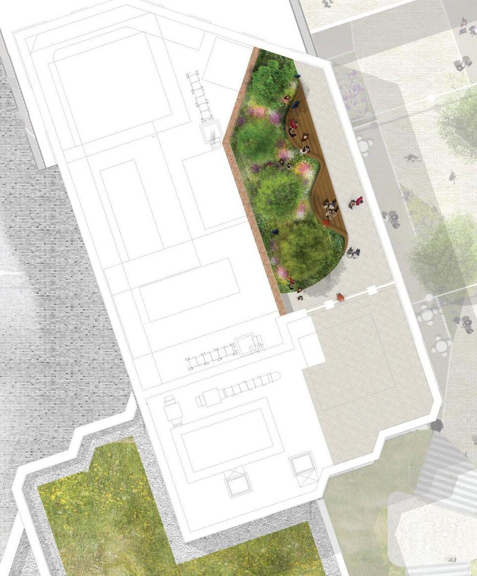 -The pavilion has been reduced and is less visible from the High Street. This results in more outdoor amenity space for the roof terrace.