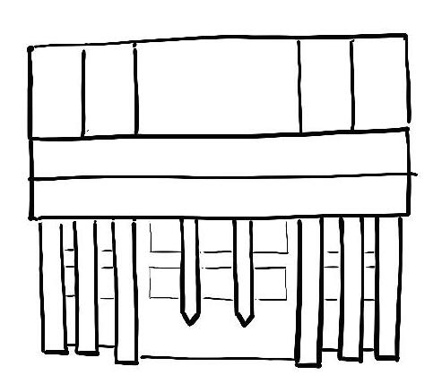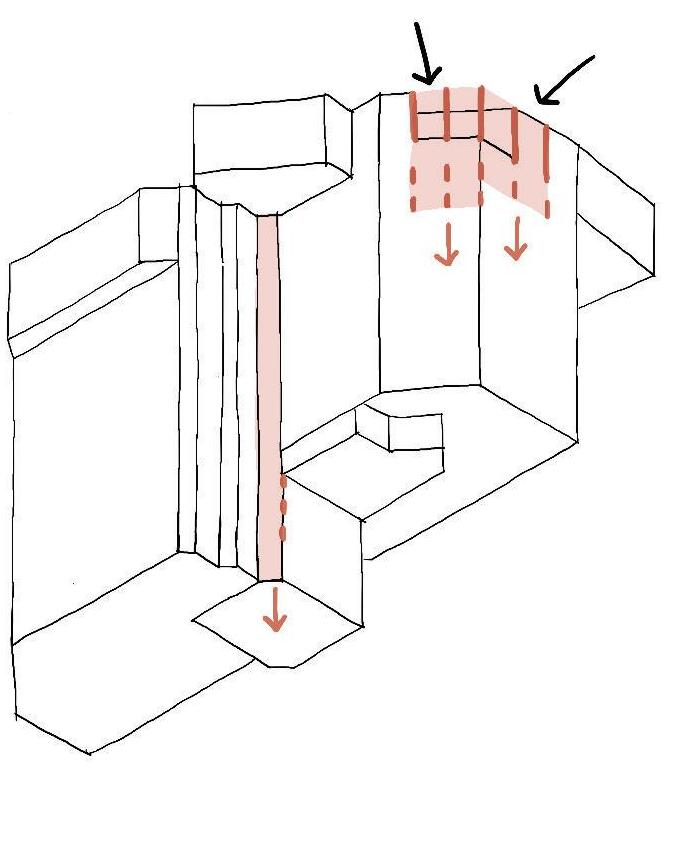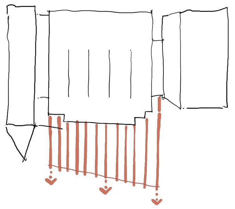 -The location of the main entrance within the colonnade does not seem prominent enough and could be quite a dark space.