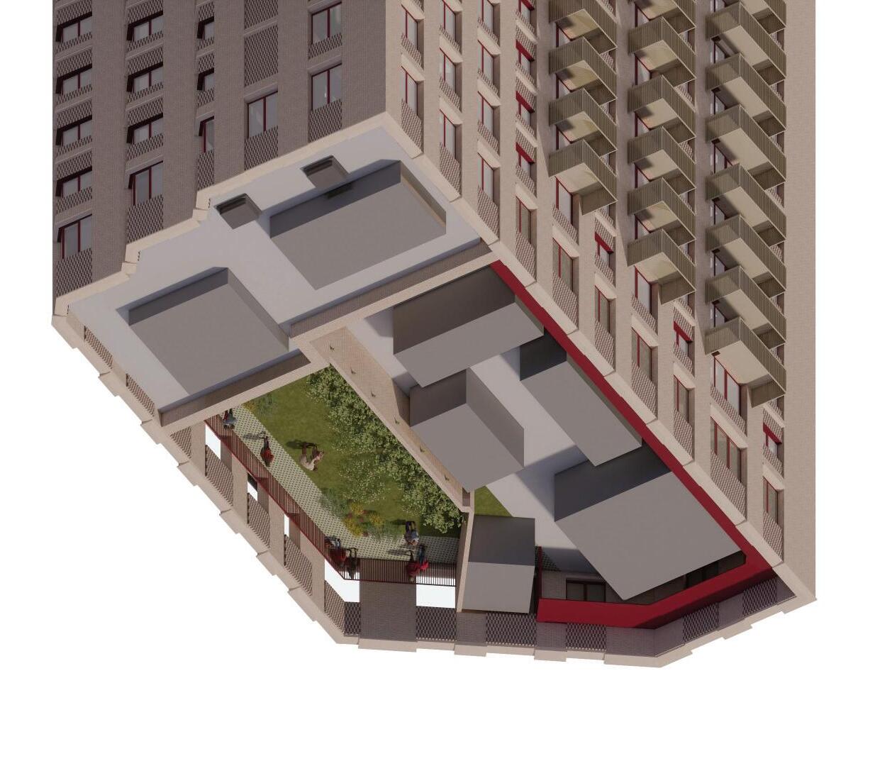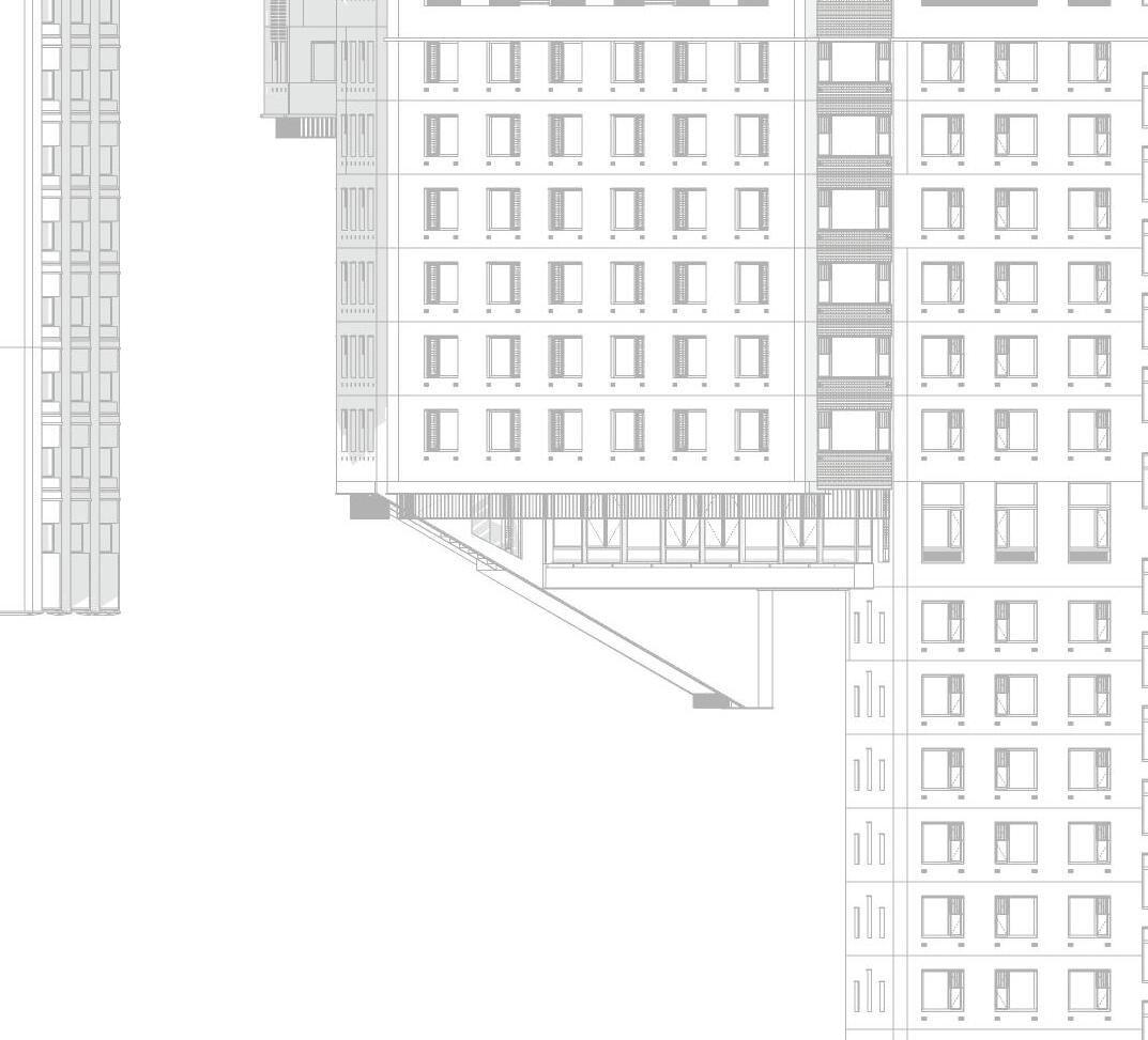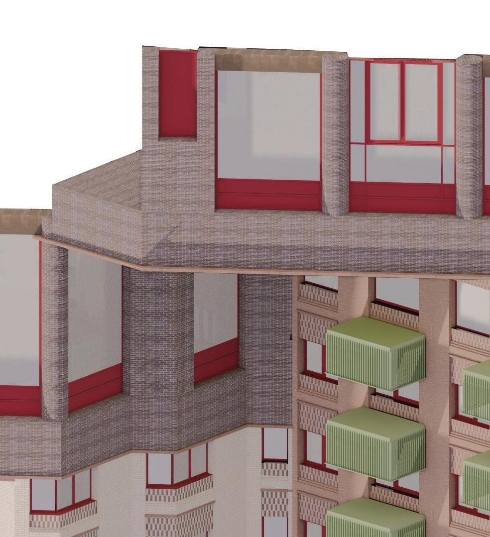 -We have further resolved the design of the ‘knuckle’ of the building, working into blank parapets to avoid a feeling of heaviness.