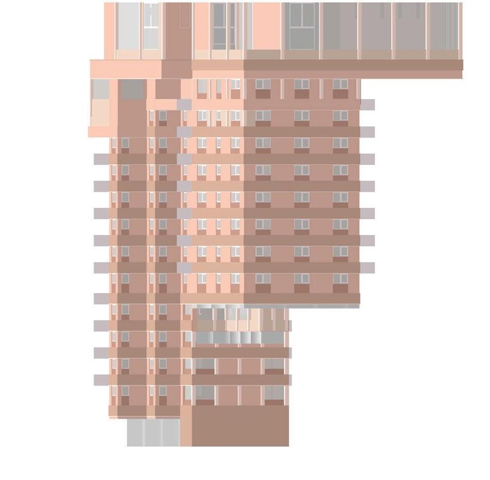 -SEW explored alternative massing options for C1 to better align its form with N2. The revised design features a central core and chamfered corners, mirroring N2, so the two buildings work cohesively as a pair.