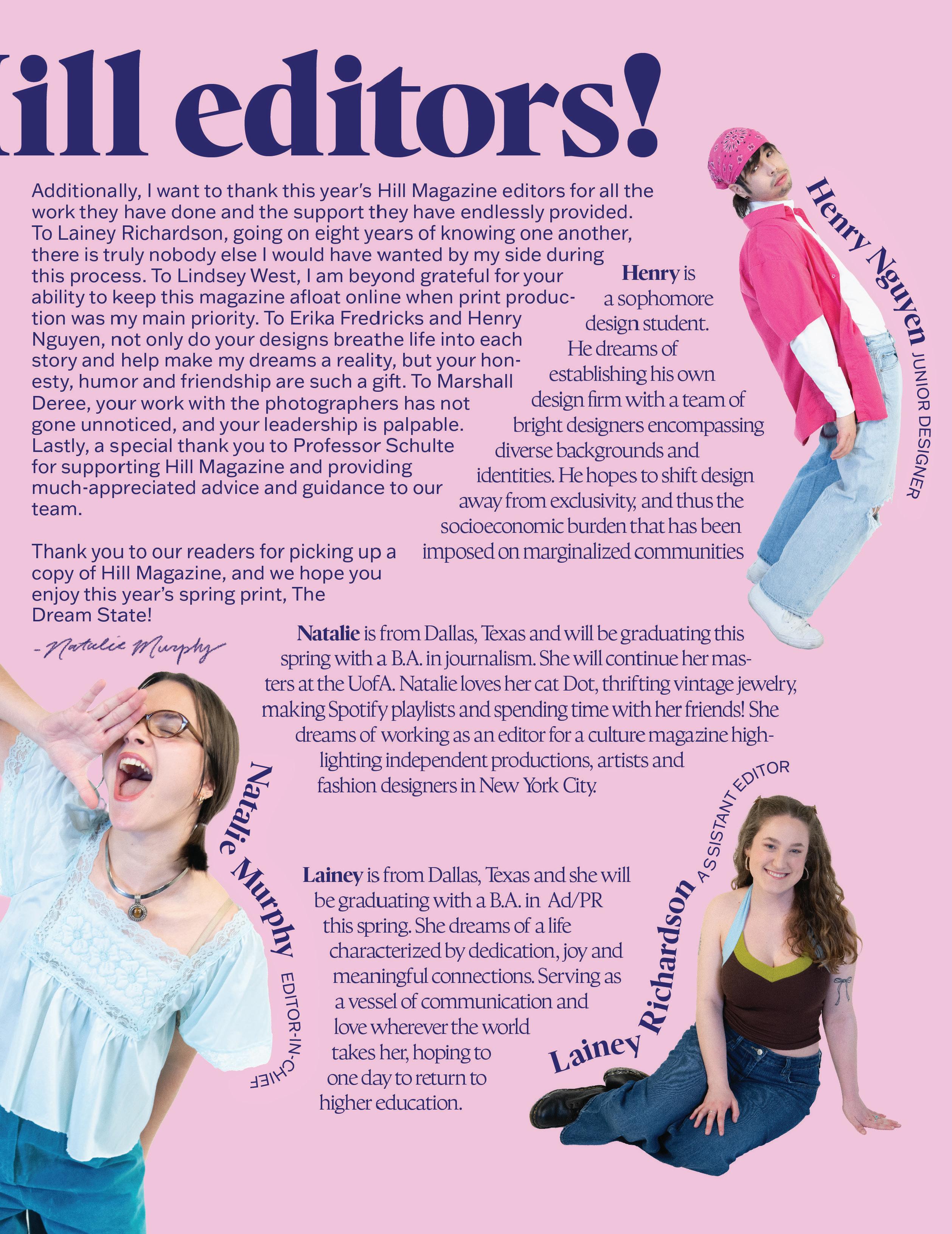 “I think that it’s interesting that dreams refer to both of these things, because I think they spring from similar parts of your mind,” Trist said. “When you’re asleep, your mind comes up with all of these wacky scenarios. But aspirations, at least for me, also come from a place of imagination.”