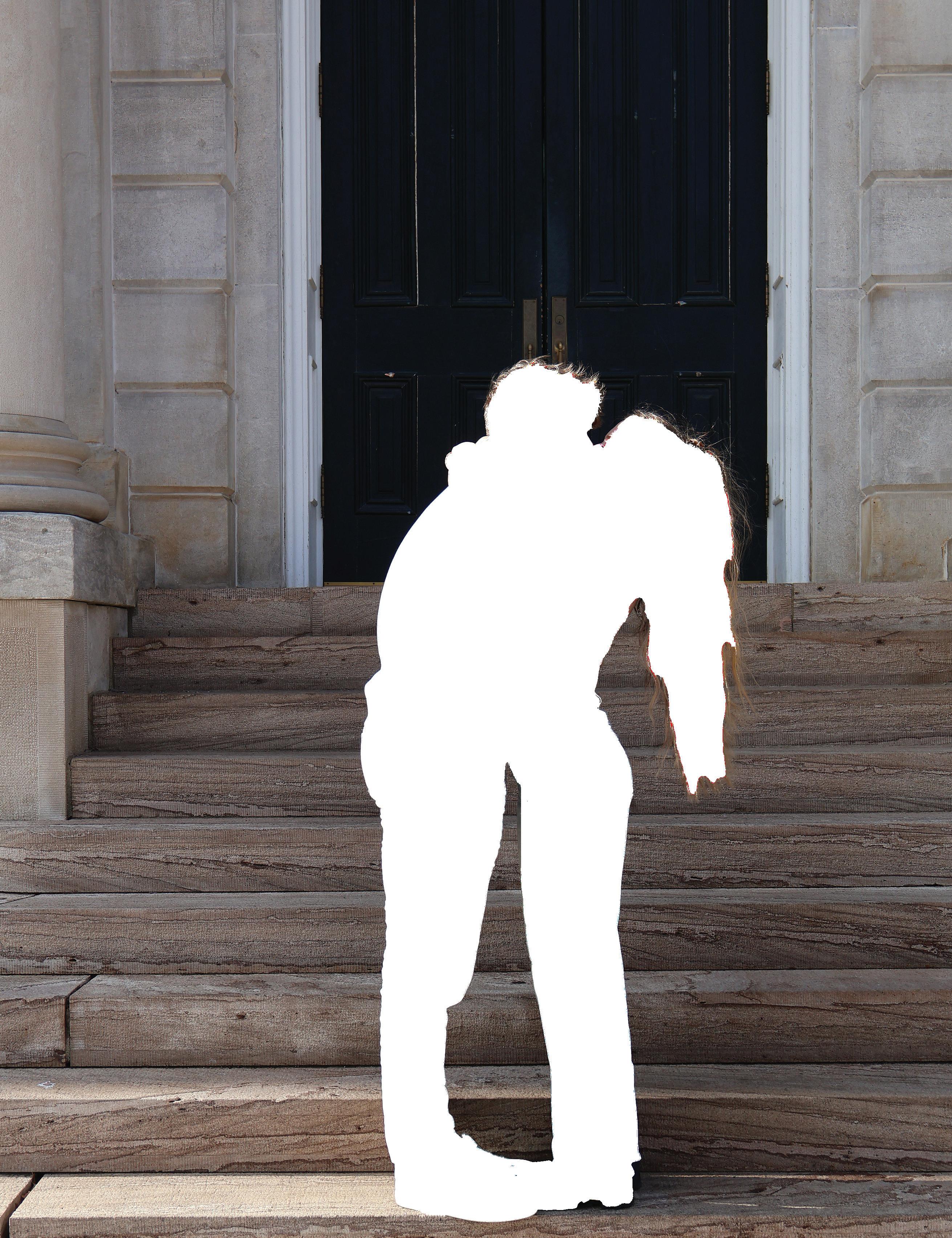 Julianna and Matthew Breazeale kiss on the steps of Old Main. The couple got married in August 2024, while still studying at the University of Arkansas. Photo by Keely Loney