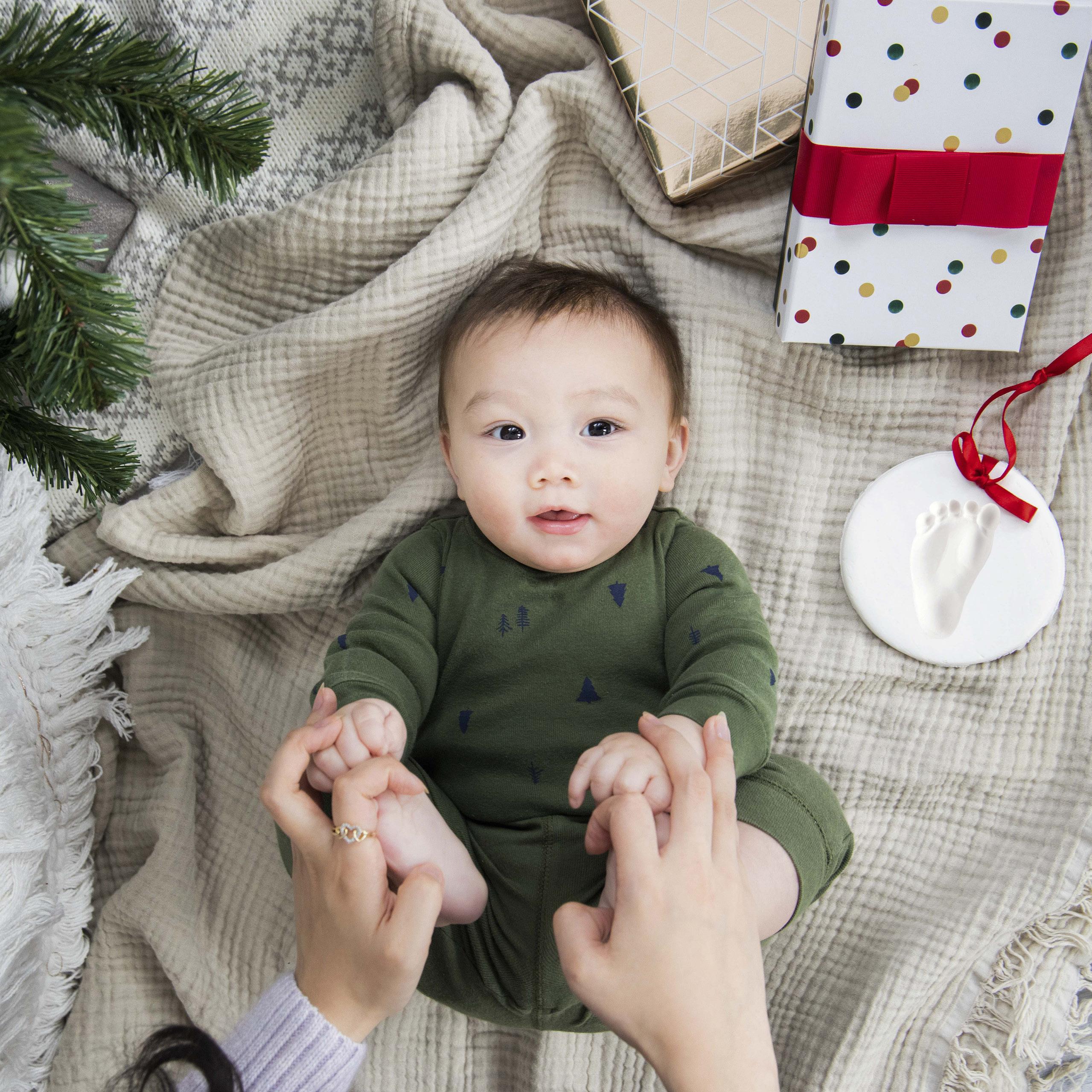 press baby's hand or foot onto the inkpad peel card back to reveal print cherish baby's tiny hands and feet! baby's foot never touches the ink!