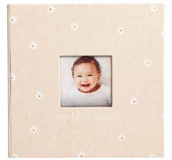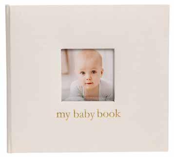 Includes 1 linen babybook with over 50 pages to fill in 3” x 3” photo insert