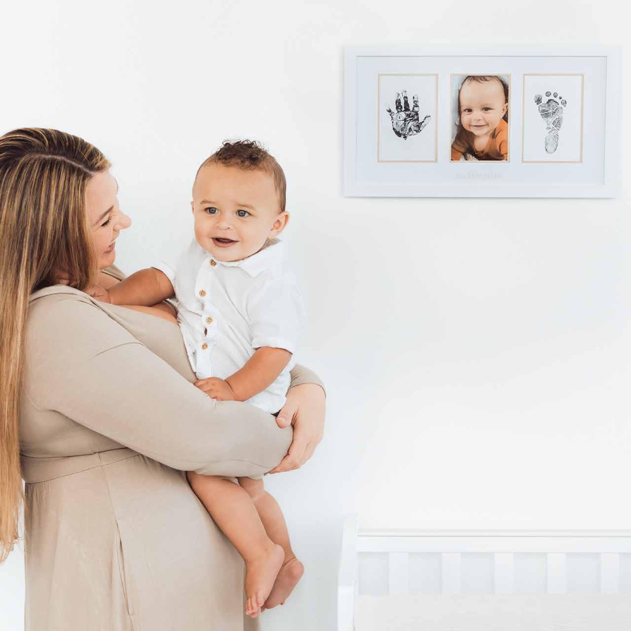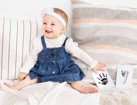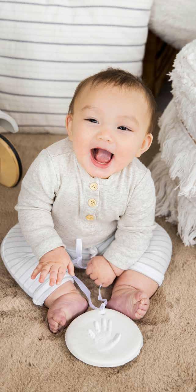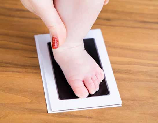 press baby's hand or foot onto the inkpad peel card back to reveal print cherish baby's tiny hands and feet! baby's foot never touches the ink!
