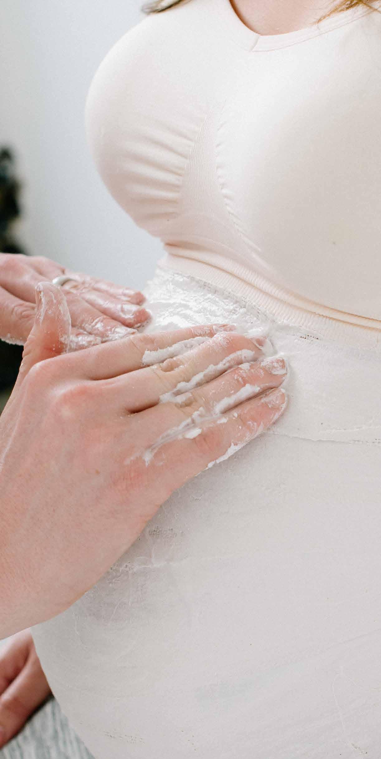 Includes 5 rolls of plaster tape, belly casting lubricant, plastic drop cloth, non-latex gloves, and a sanding screen to create mold of belly