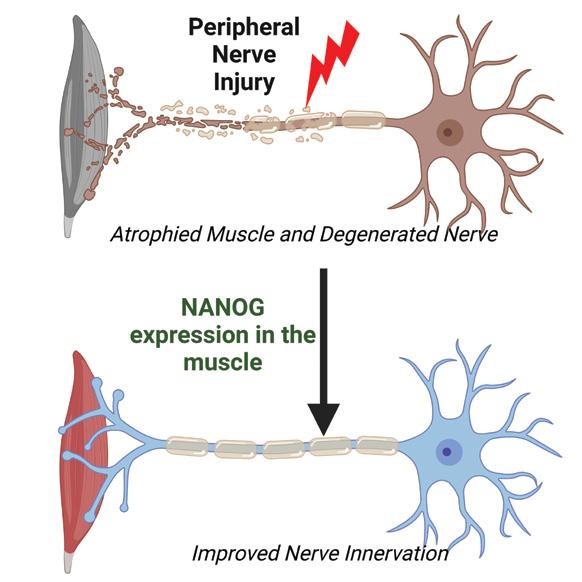 NANOG expression reprograms muscle tissue into a state that makes it receptive to innervation, ultimately enhancing functional recovery following nerve injury.