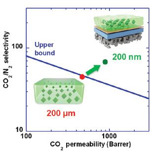 Lin’s team also created mixed matrix materials (MMM) for gas separation membranes and demonstrated superior gas separation, significantly outperforming current commercial membranes. They also developed thin-film composite membranes to capture CO2 from post-combustion gases, which could be produced using existing industrial manufacturing processes and have a higher permeability than thicker films.