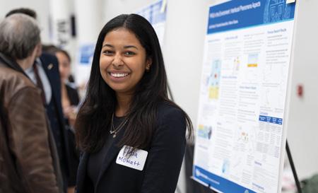 Over 200 people participated in the UB CBE Graduate Research Symposium held on Friday, October 20, 2023. The event featured over 60 posters, two lectures from senior graduate students, and a keynote lecture from Hemant Dandekar, PhD 1991, Global Commercial Director of Automotive Advanced Interlayers at Eastman Chemical Company. A video of his lecture, “My Journey from a Technologist to a Global General Manager - Adventures and Lessons Learned Along the Way,” can be found on the department’s YouTube Channel PhD students Bratin Sengupta (Miao Yu Research Group) and Ronel Zachary Samuel (Stelios Andreadis Research Group) provided opening lectures. The poster contest and reception were held in the Center for the Arts Atrium.