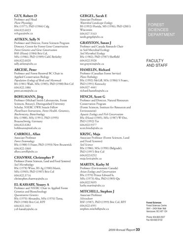 Forest Sciences Forest Sciences Centre 3041 – 2424 Main Mall Vancouver, BC V6T 1Z4 Phone: 604.822.2507 Fax: 604.822.9102