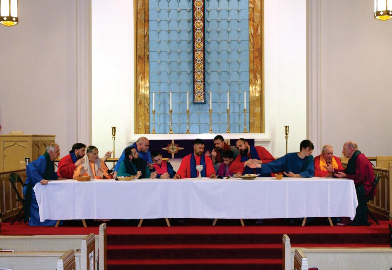 This year, the participants are as follows: Jesus (Tom Ruffner), Simon (Eric Hinkle), Thaddeus (Ray Fox), Matthew (Bill Bohner), Nathaniel (Ken Stevens), James the Less (Jon Millisock), Andrew (Dennis Gluck), Phillip (Mike Juszynski), Thomas (Dave Zarenkeiwicz), James the Great (Jack Zarenkeiwicz), Peter (Mike Heisey), Judas (Rich Enders), and John (Riley Ruffner).
