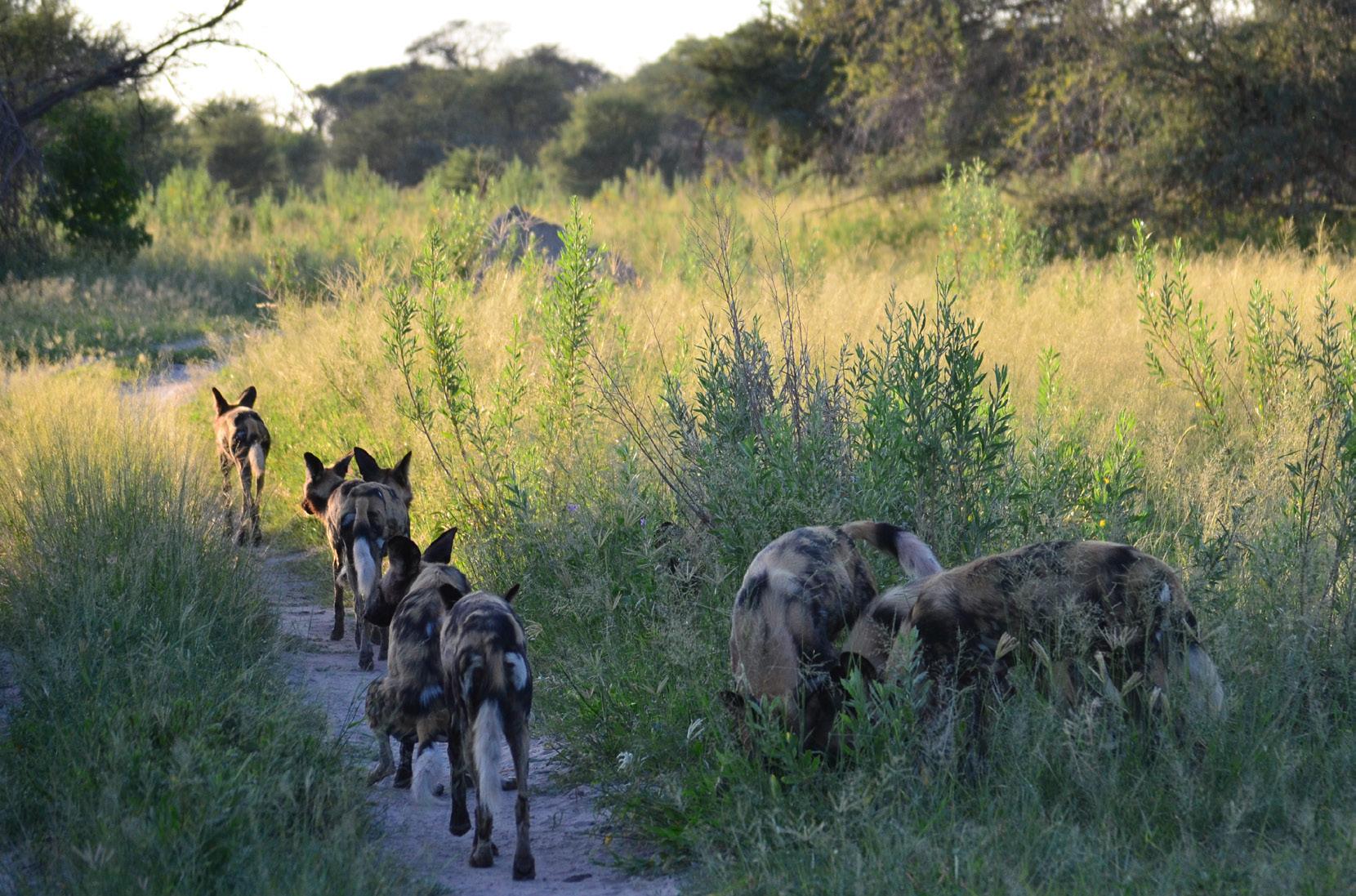 The multi-pack scent-marking sites we discovered are proof that African wild dog packs communicate through scent. Finding these scentmarking sites where neighboring packs kept returning has rewritten what we’ve come to expect of wild dogs. It’s a complete breakthrough in our understanding of wild dog biology.