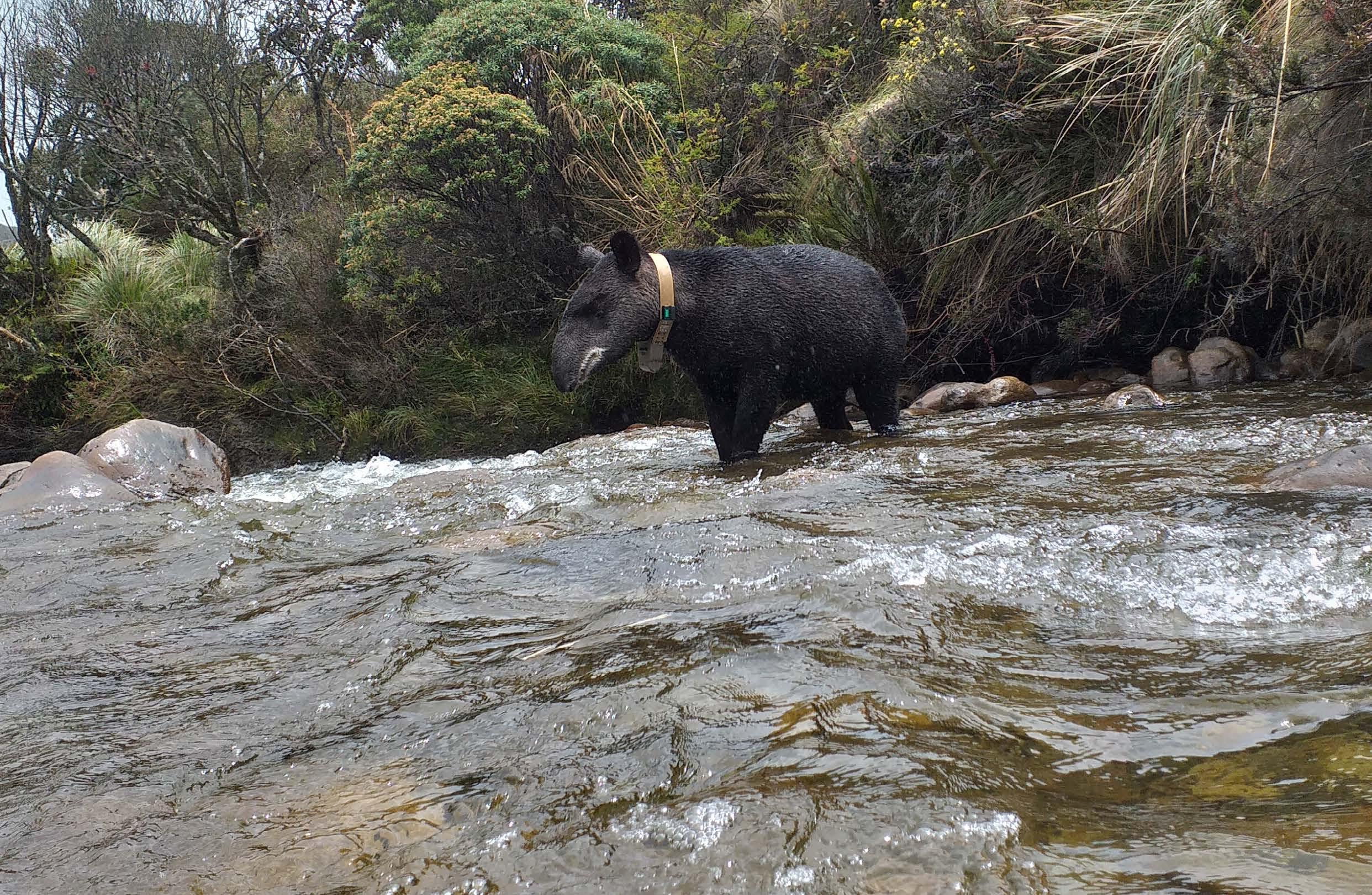 Mountain tapirs are highly specialized herbivores. They inhabit montane forests, ‘paramos’ (or highaltitude grasslands), and cloud forests. They occur within 2,000-4,000 meters above sea level. Animals also use most water features present in their habitat. Generating new knowledge on habitat usage patterns (especially within their home ranges), activity patterns during day and night, habitat preferences, conflict with humans and livestock, and how often animals cross highways, supports the development of conservation action plans and strategies. Additionally, it contributes to the study of climate change’s impact on mountain tapir habitat and survival in the wild. The GPS collars used to track the animals also permit us to determine the altitudes these animals use and when they seek out specific areas of their home range. It also improves our understanding of the wild tapirs’ social structure and behaviors (such as if they are solitary or if multiple individuals