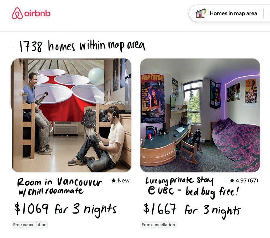 Airbnb currently has no specific regulations stating that listed properties cannot be located on a university campus, nor do they have rules for properties that are. UBC students have been taking full advantage of this policy oversight and have been listing their dorms on the short-term accommodation platform, regardless of their dormitories’ “special quirks.”