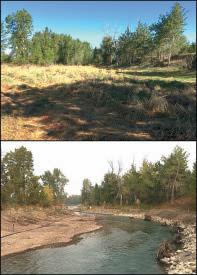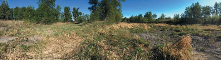 Pre-construction of the main channel & during construction — view towards side channel inlet.