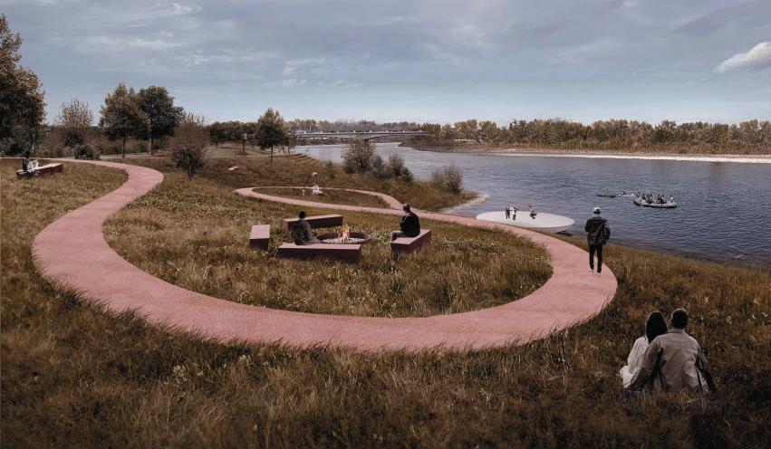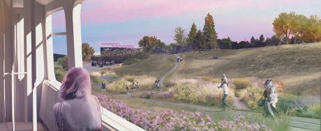 Regenerative Railscapes. Ephemeral Infrastructures, by Zoe Crandall (MLA ’22). Design scenario, View from future LRT Green Line toward Jefferies Park in Ramsay, Calgary. Landscape Architecture Studio II project (Instructor Enrica Dall’Ara). | PHOTO SAPL ARCHIVE