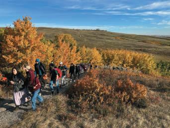 b) Landscape Ecology and Planning course. Nose Hill Park, Calgary, Fall 2024 (Instructor Douglas Robb). | PHOTO COURTESY OF DOUGLAS ROBB