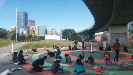 c) 4th Avenue Flyover Public Space. | PHOTOS COURTESY OF THE AUTHORS Featured images from Calgary-based research projects: