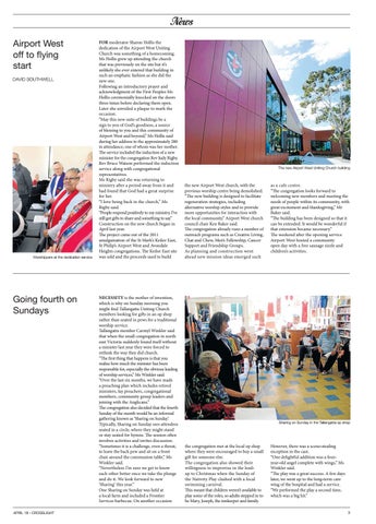as a cafe centre. “The congregation looks forward to welcoming new members and meeting the needs of people within its community, with great excitement and thanksgiving,” Mr Baker said. “The building has been designed so that it can be extended. It would be wonderful if that extension became necessary.” The weekend after the opening service Airport West hosted a community open day with a free sausage sizzle and children’s activities.