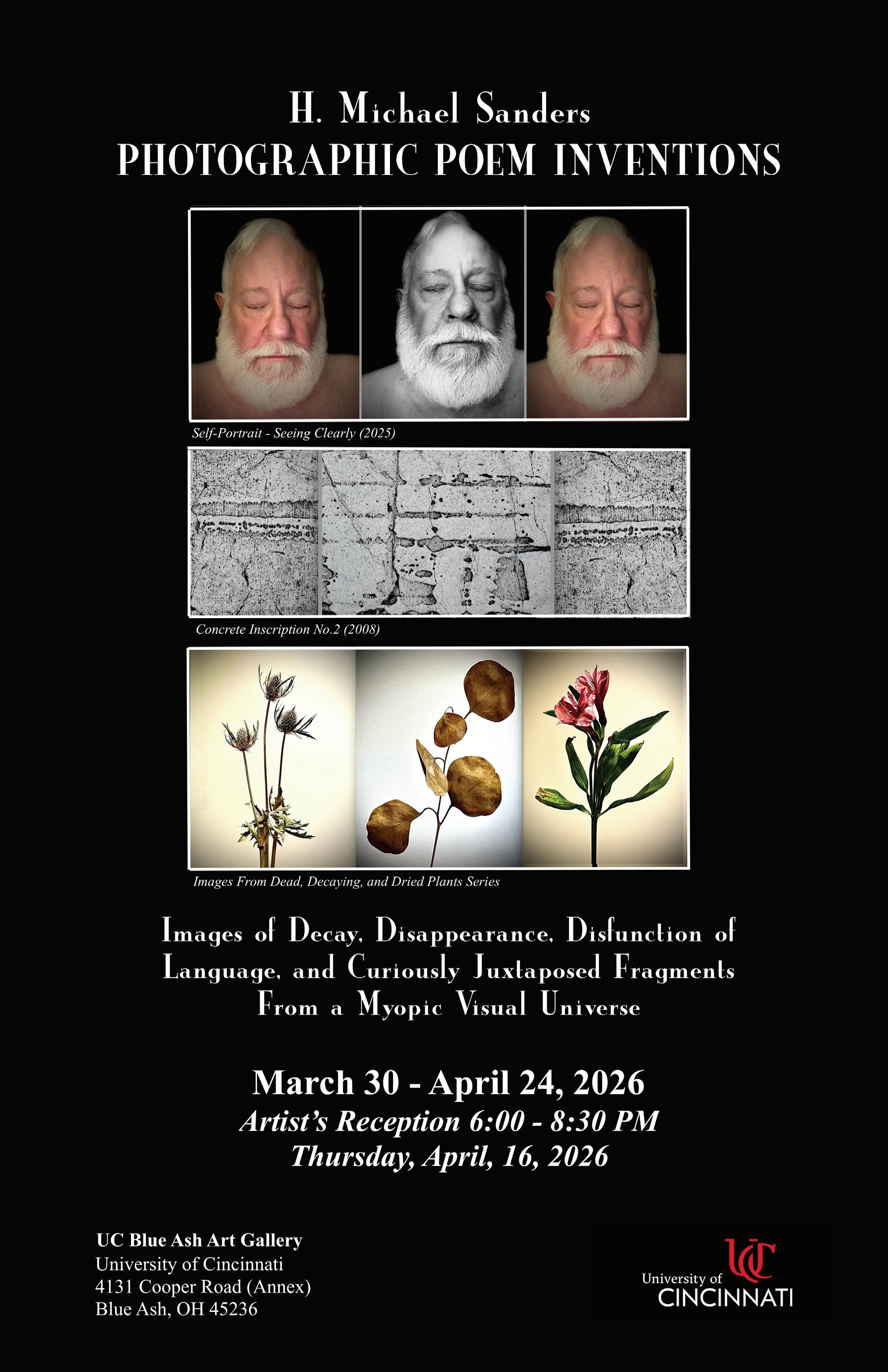 The UC Blue Ash Art Gallery is supported by the Office of the Dean and the departments of Art & Visual Communication and Media Communications & Technology. This exhibition was developed and curated by H. Michael Sanders with the assistance of Roo Hedrick.