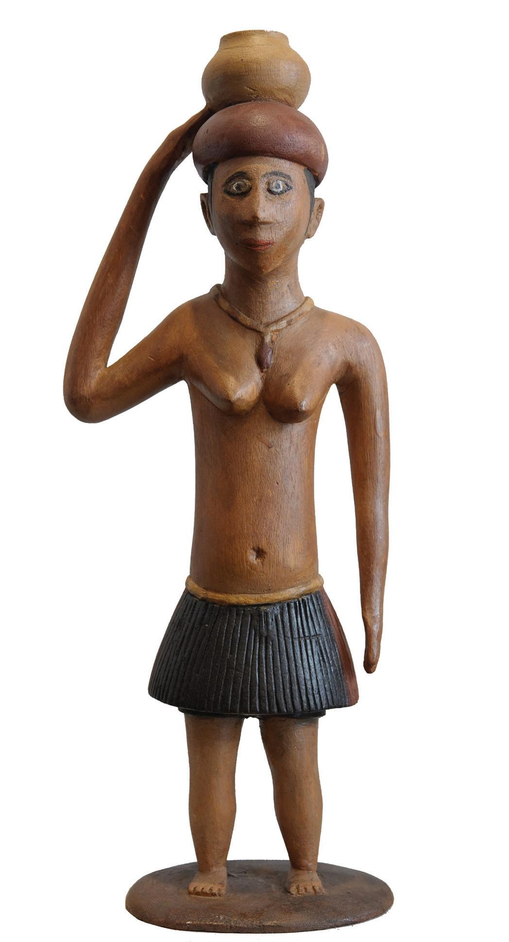 Colheres de madeira e espátulas, com recorte e perfil elegante, usadas, sobretudo, em cerimónia, mostram o que há transformado em figura feminina, outras apresentam apenas a cabeça e os seios, a que se associam, normalmente, decorações geométricas e incisas. Todavia, registam-se exemplares cujo cabo termina em forma de prótomo de touro ou de hipopótamo, enquanto outros exibem recortes geométricos, alguns ainda com alusões antropomórficas e a ornamentações entalhadas.