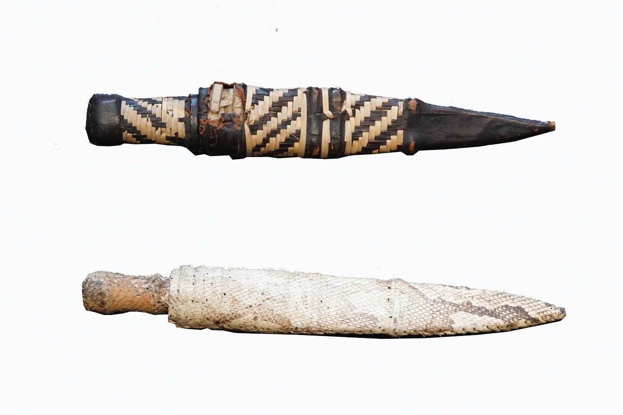 com motivo geométrico, tais como espadas e punhais, armas reconhecidas como símbolos da autoridade.