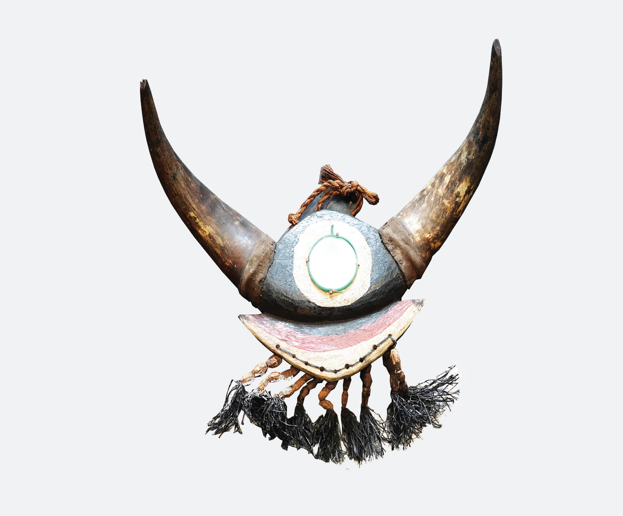 A mais conhecida das máscaras bijagós é a “Vaca-Bruto”, representando uma cabeça de touro, talhada em madeira,